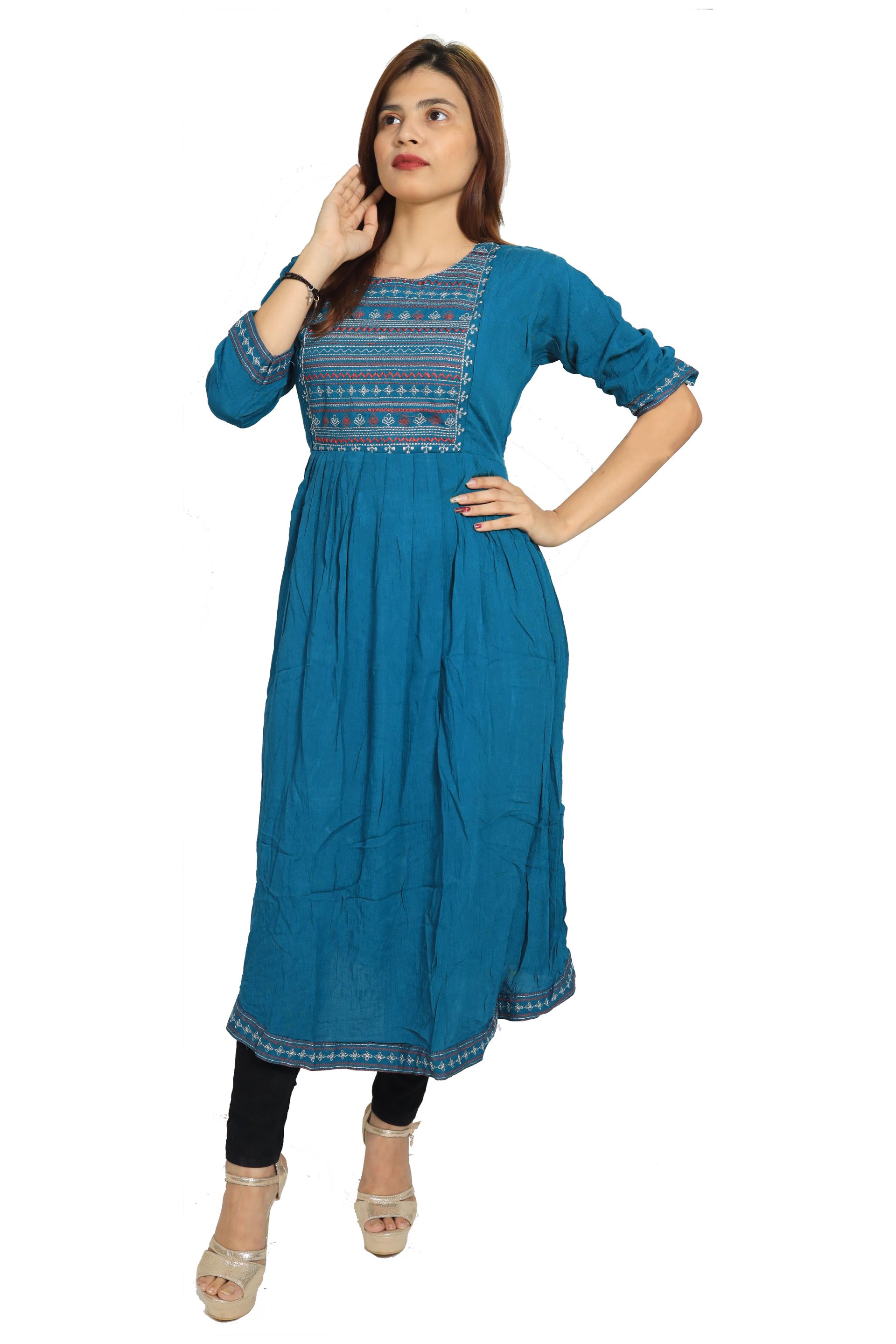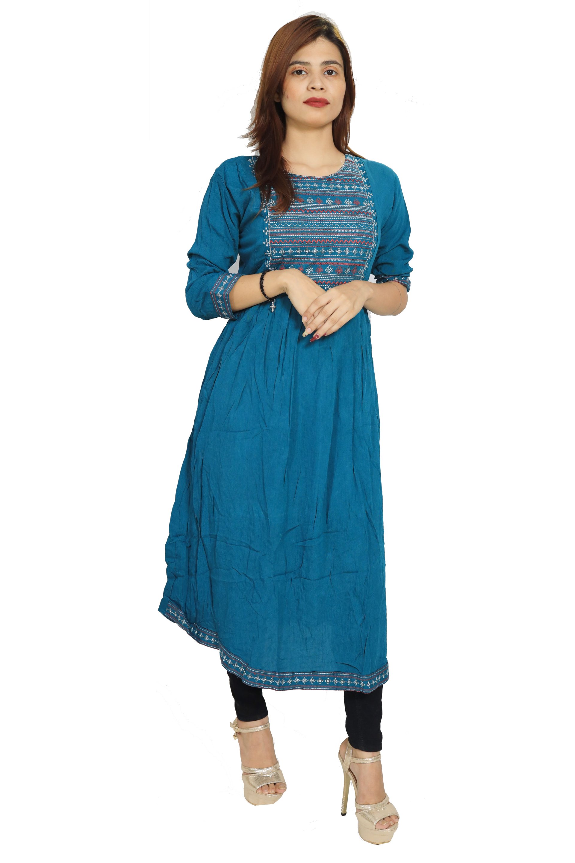 Women loves to wear kurtis of any age group. The fashion is not only limited upto married women but also to the teenagers. For any traditional day, poojas or any religious program, kurtis are mostly used to wear by ladies which gives positive, ritualistic and ceremonial vibes. The recognization of kurtis is still going on in 21st century. So, We have brought you a full collection of embroidery kurtis which is made of Rayon and designed for you plesant and comfy.
