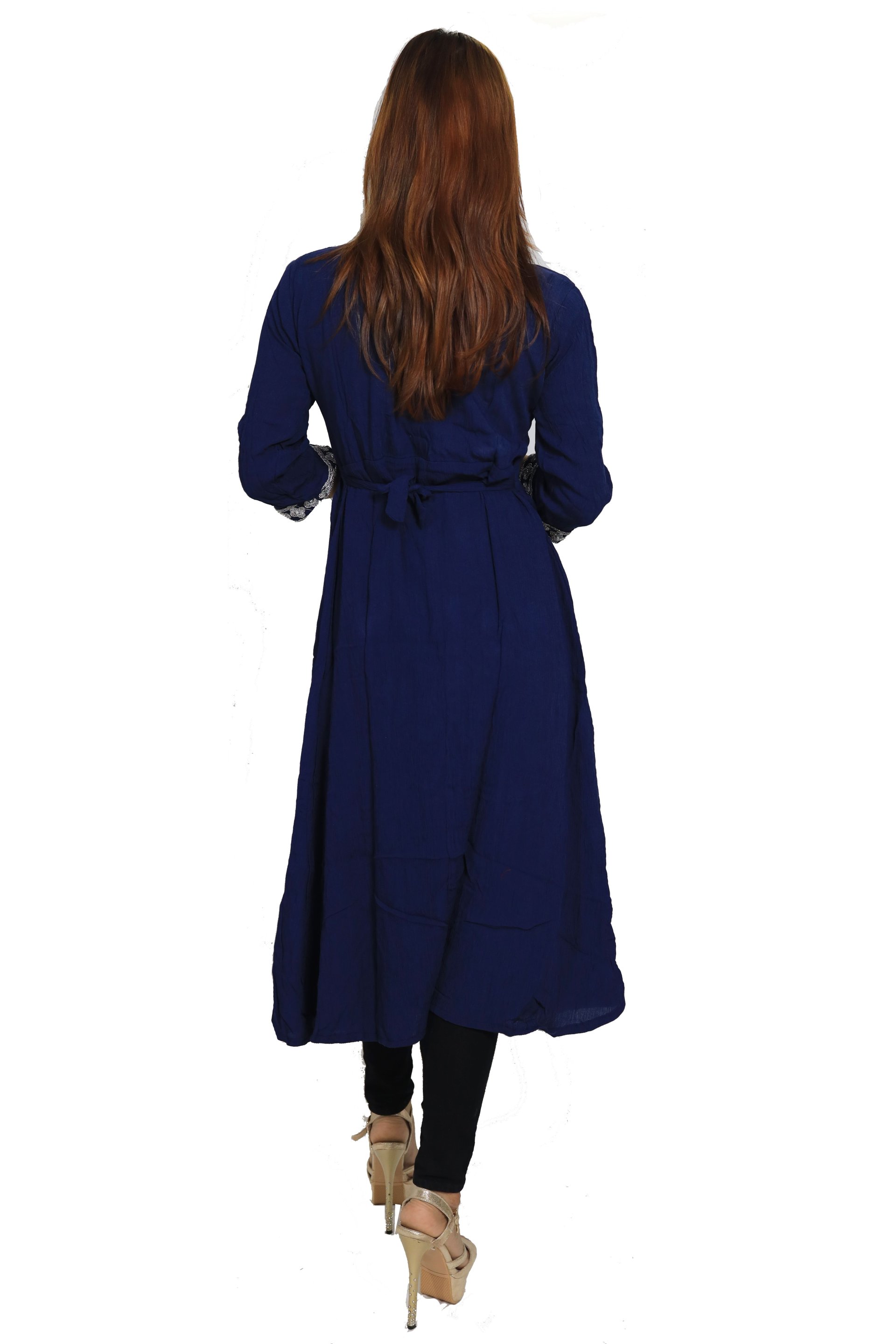 Flower and pearl embroided straight kurti for womens / girls (Dark Blue) - Made up of Rayon and designed for you plesant and comfy