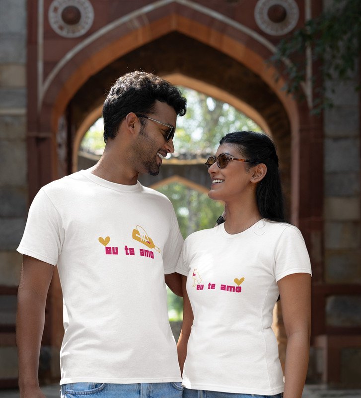 Eu Te Amo Couple Printed (White) T-shirts