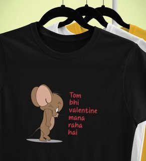 Even Tom Has A Valentine: (black) T-Shirt For Singles With Print