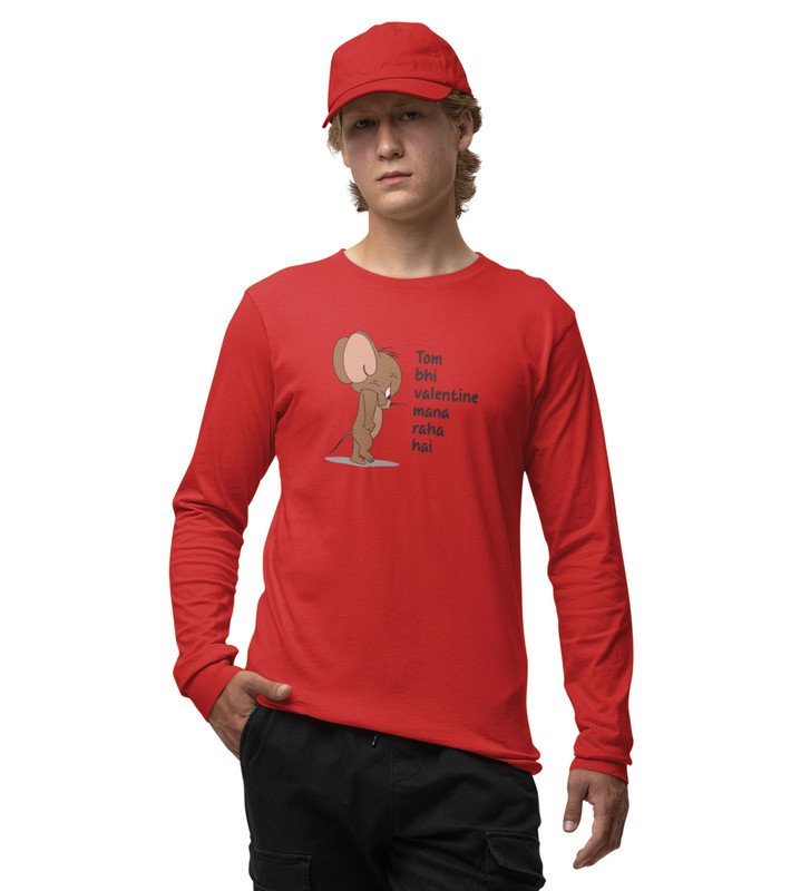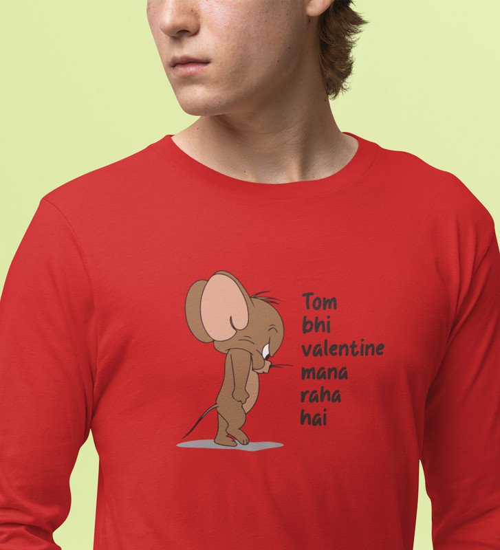 Even Tom Has A Valentine: (red) Full Sleeve T-Shirt For Singles With Print