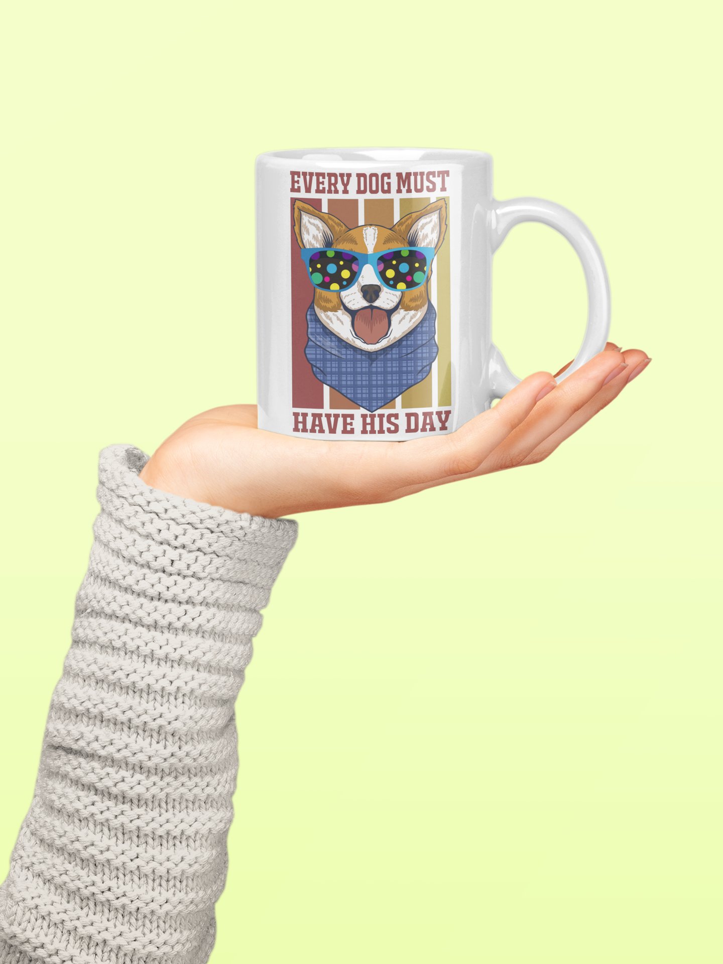Every dog must have his day- pets themed printed ceramic white coffee and tea mugs/ cups for pets lover people