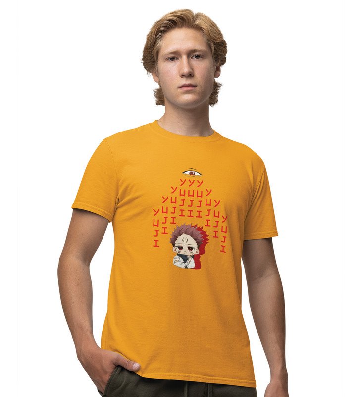 Evil Eye Itadori Cotton Yellow Printed Tshirt For Mens and Boys