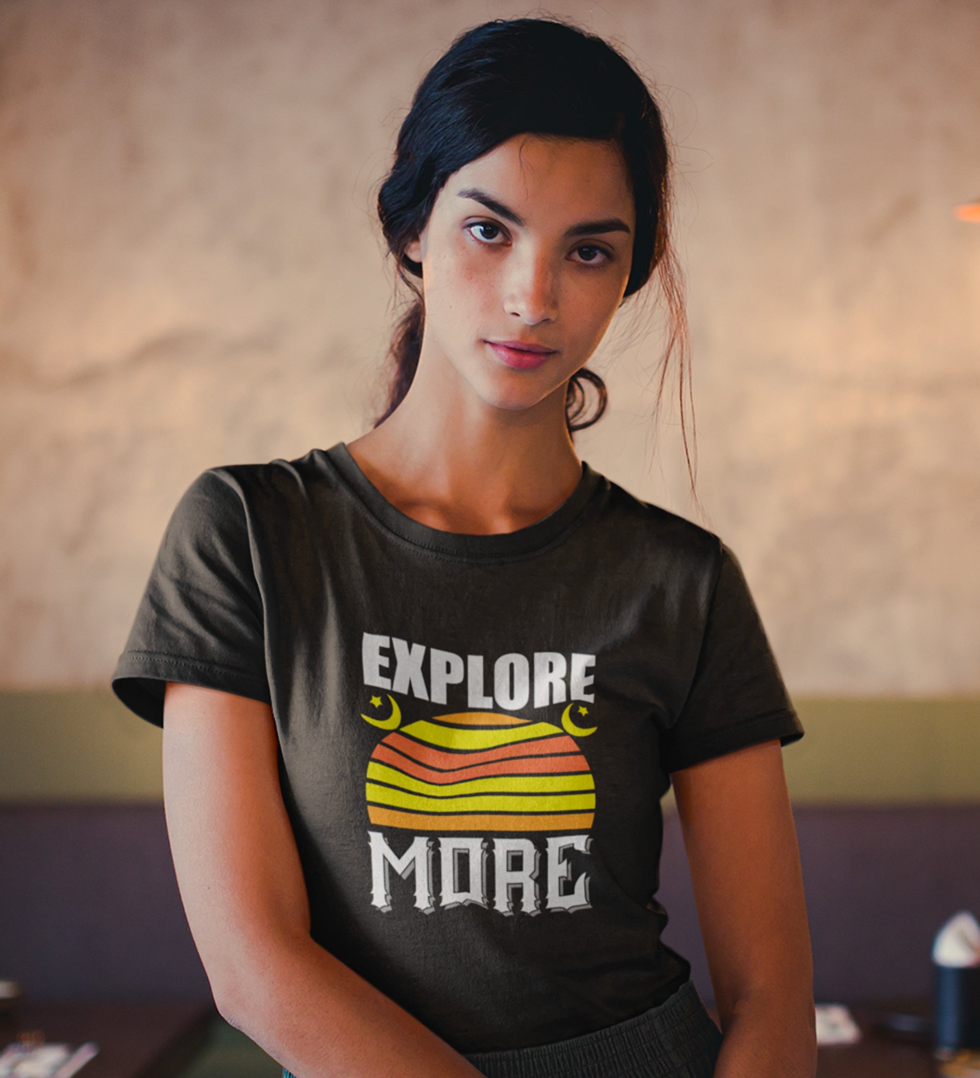 HopOfferExplore More Black Round Neck Cotton Half Sleeved Women's T-Shirt with Printed Graphics
