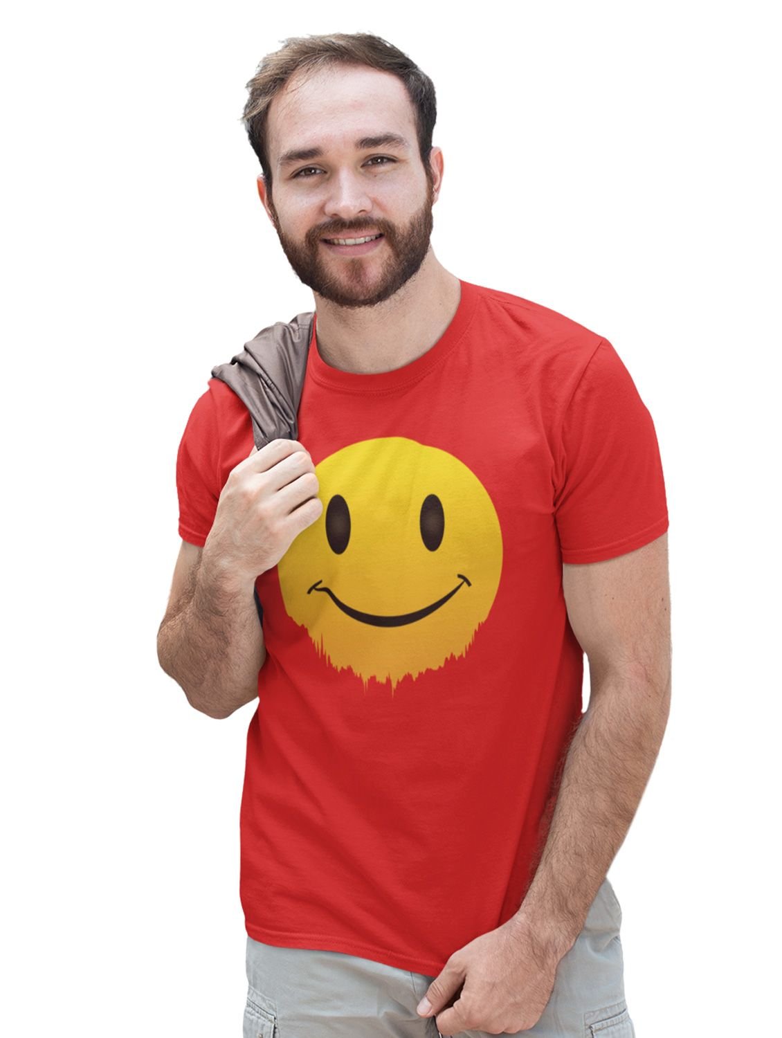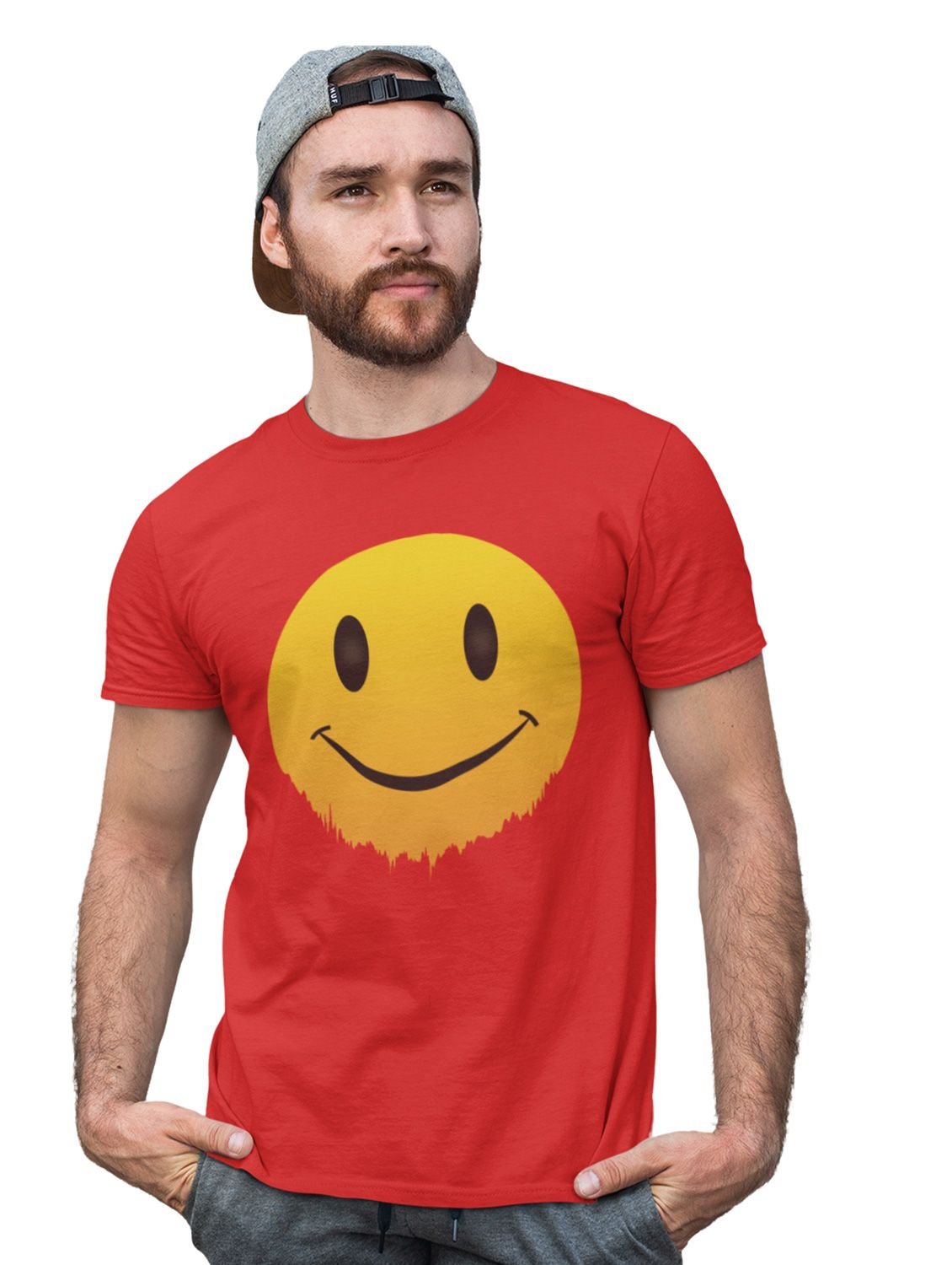 Faded Smile Emoji T-shirt (Red) - Clothes for Emoji Lovers - Foremost Gifting Material for Your Friends and Close Ones