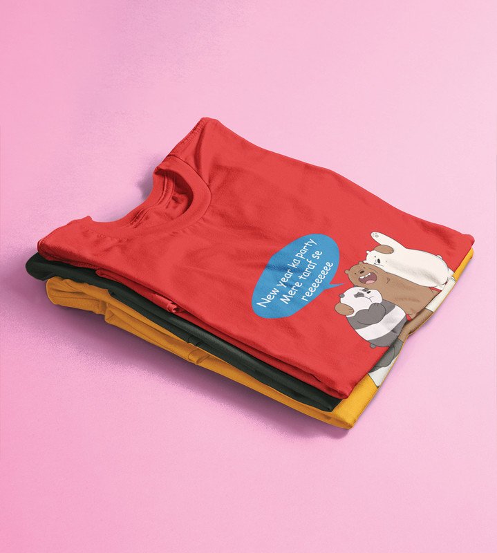 Family's New Year Red Graphic Printed T-shirt For Mens Boys