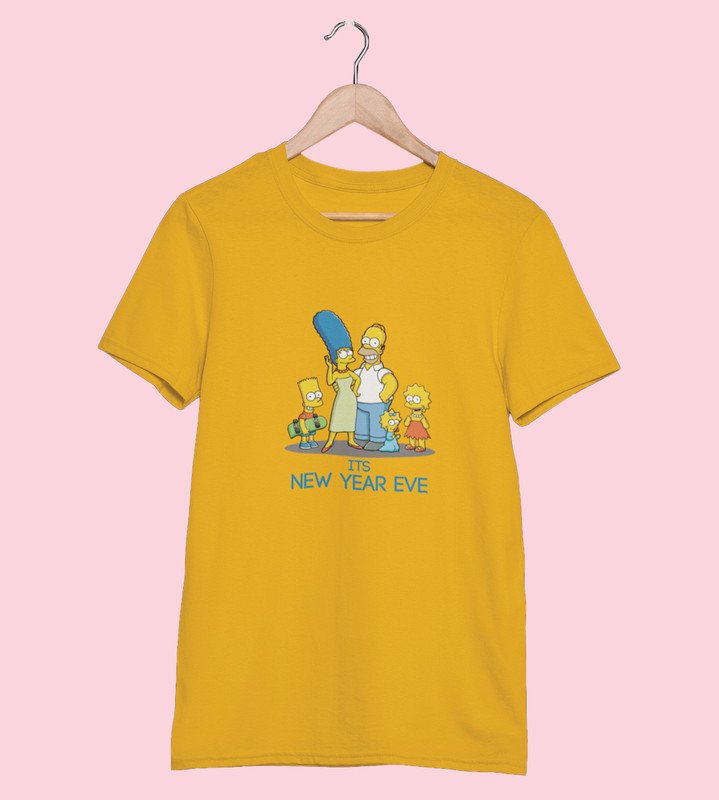 Family's New Year Yellow Graphic Printed T-shirt For Mens Boys