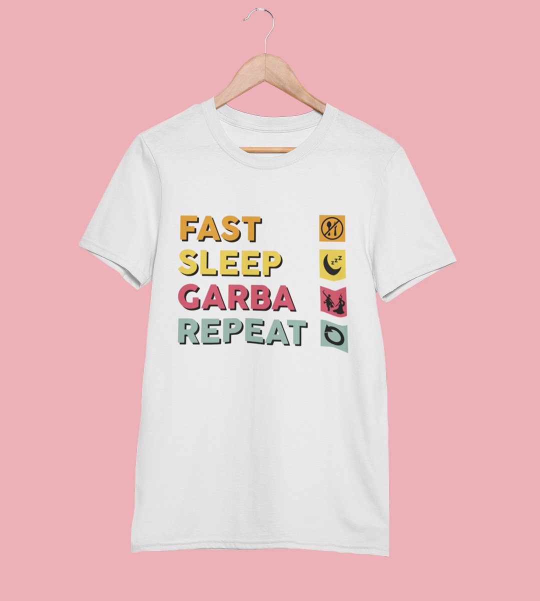 Fast sleep garba repeat printed unisex adults round neck cotton half-sleeve white tshirt specially for Navratri festival/ Durga puja