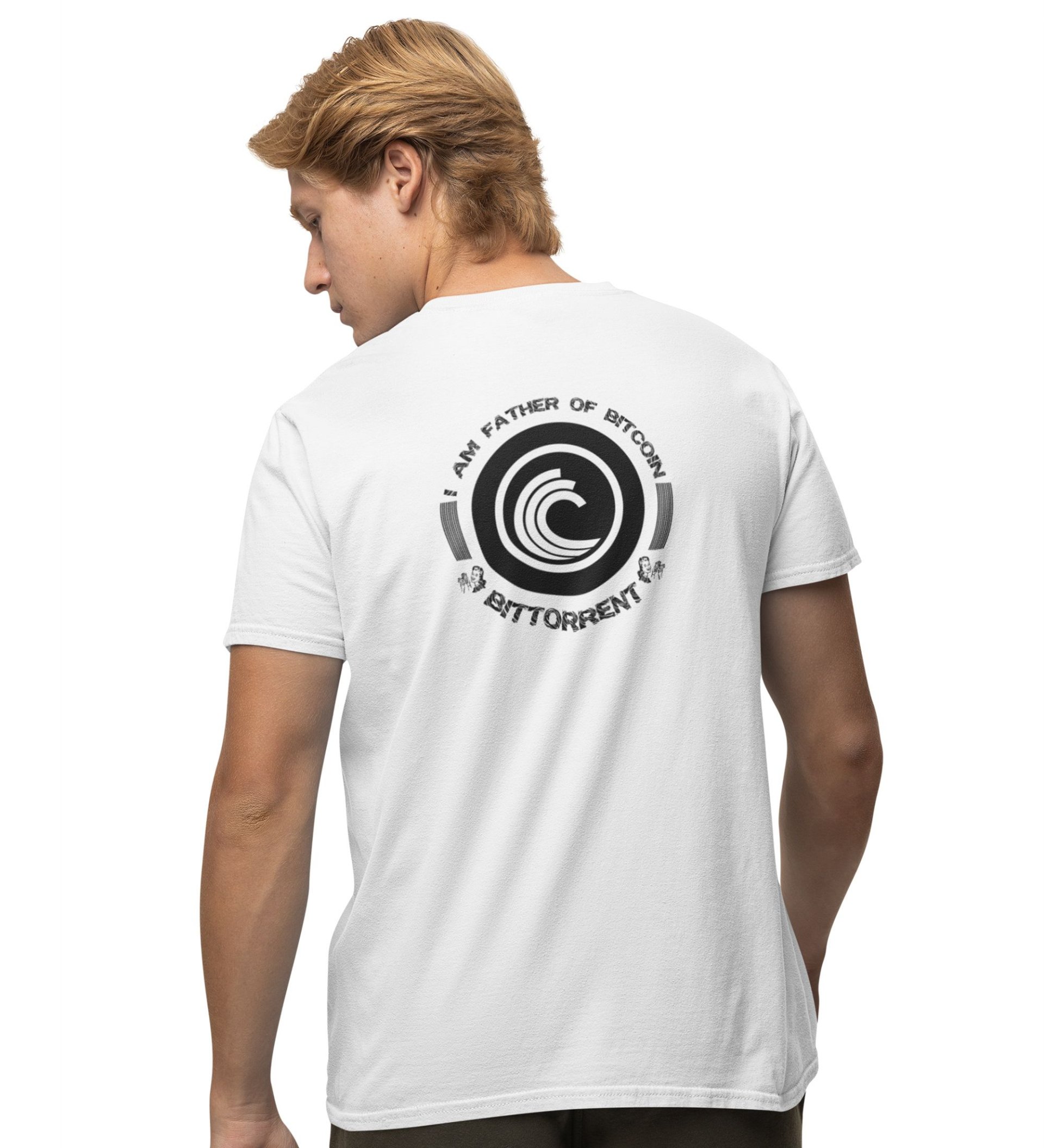 Father Of Bitcoin Wings White Round Neck Cotton Half Sleeved Men's T Shirt with Printed Graphics