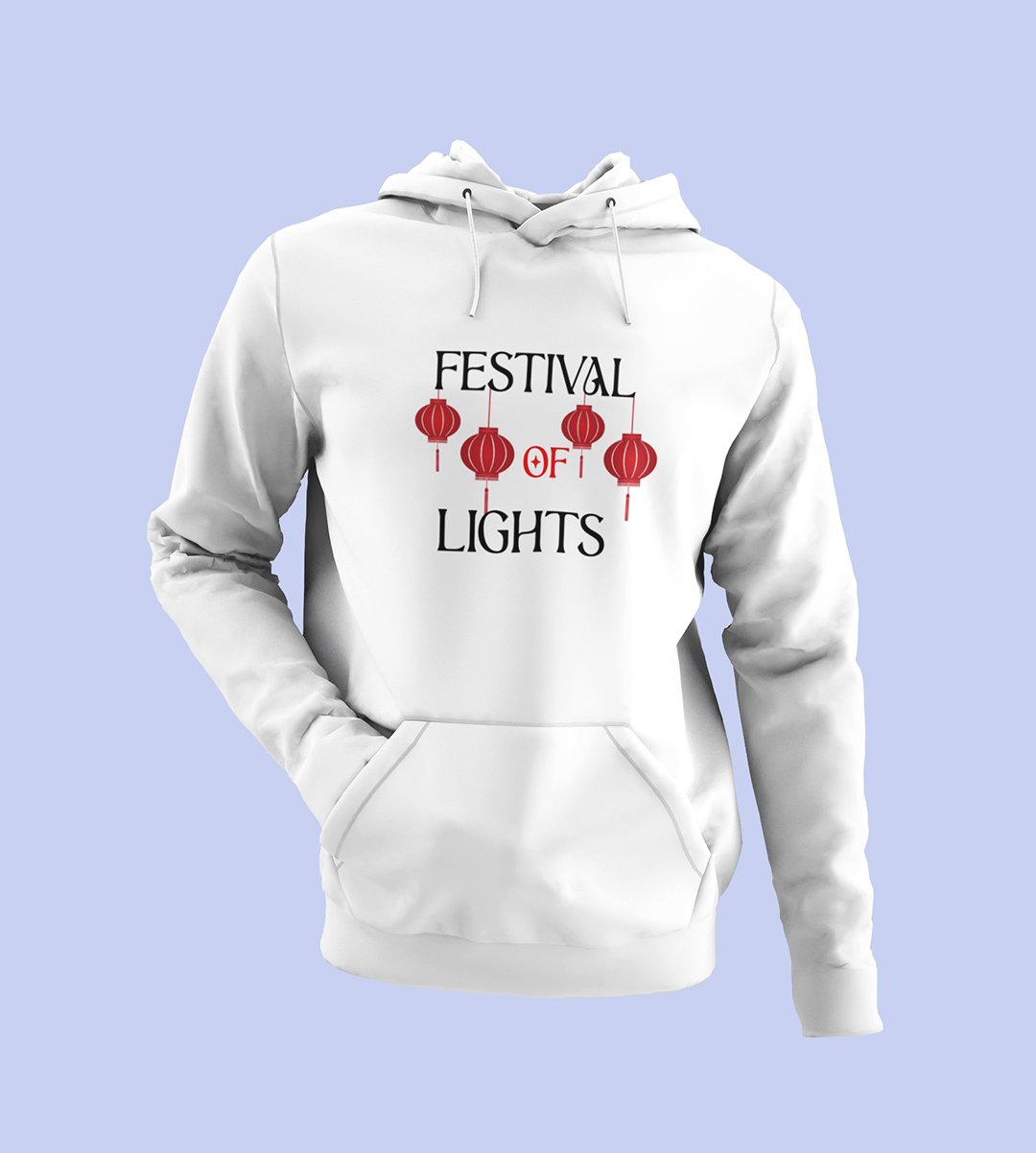 Festival of lights text printed diwali themed White Hoodie specially for diwali festival