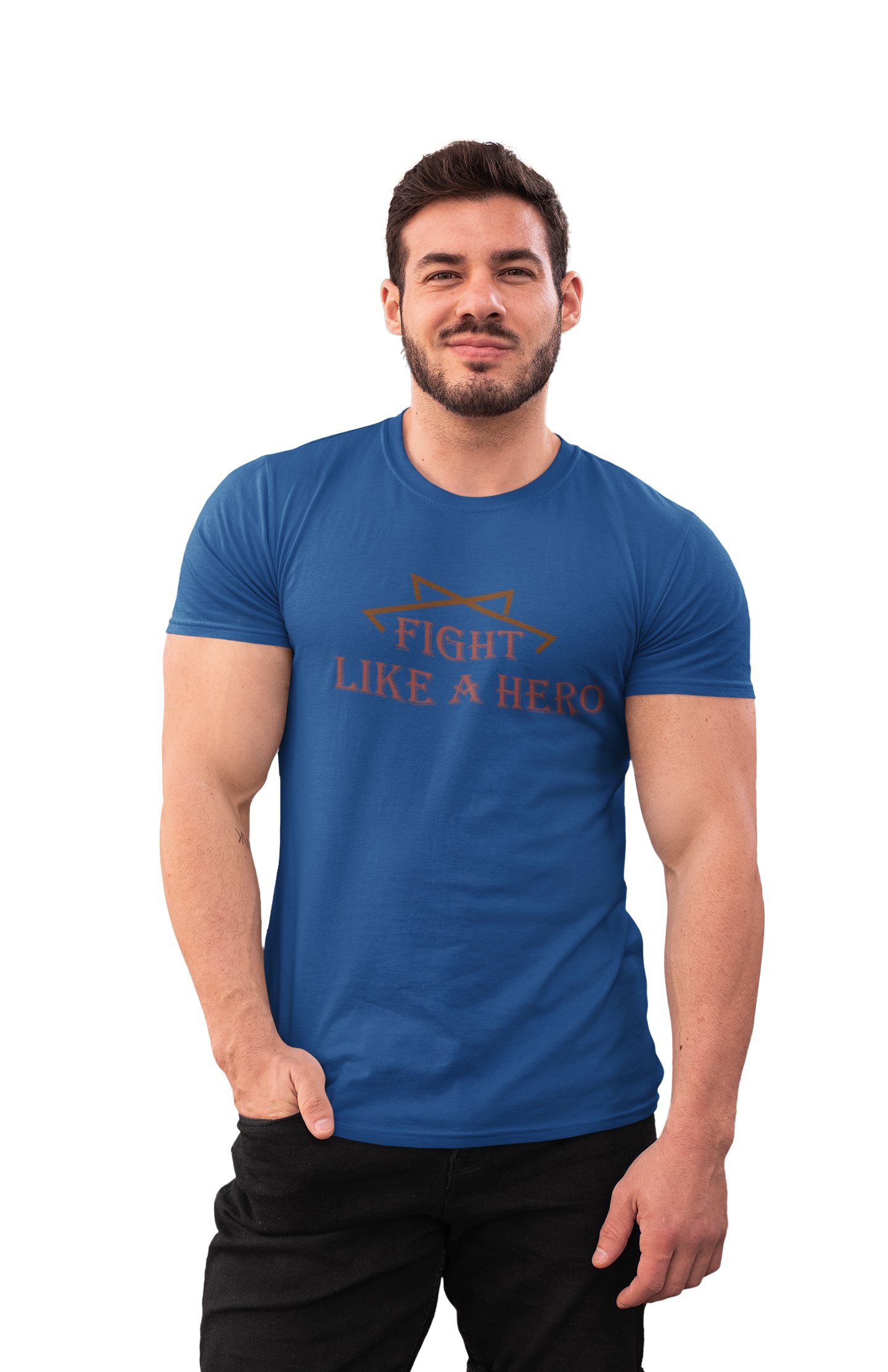 Fight Like a Hero, Round Neck Gym Tshirt (Blue Tshirt) - Clothes for Gym Lovers - Suitable for Gym Going Person - Foremost Gifting Material for Your Friends and Close Ones