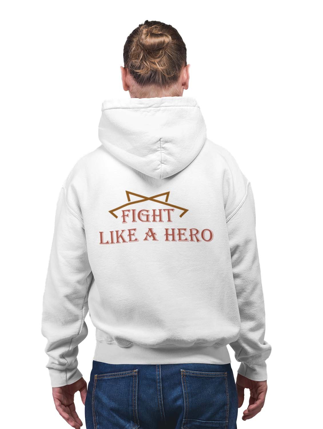 Fight Like a Hero (BG Brown) printed activewear white hoodies for winter casual wear specially for Men