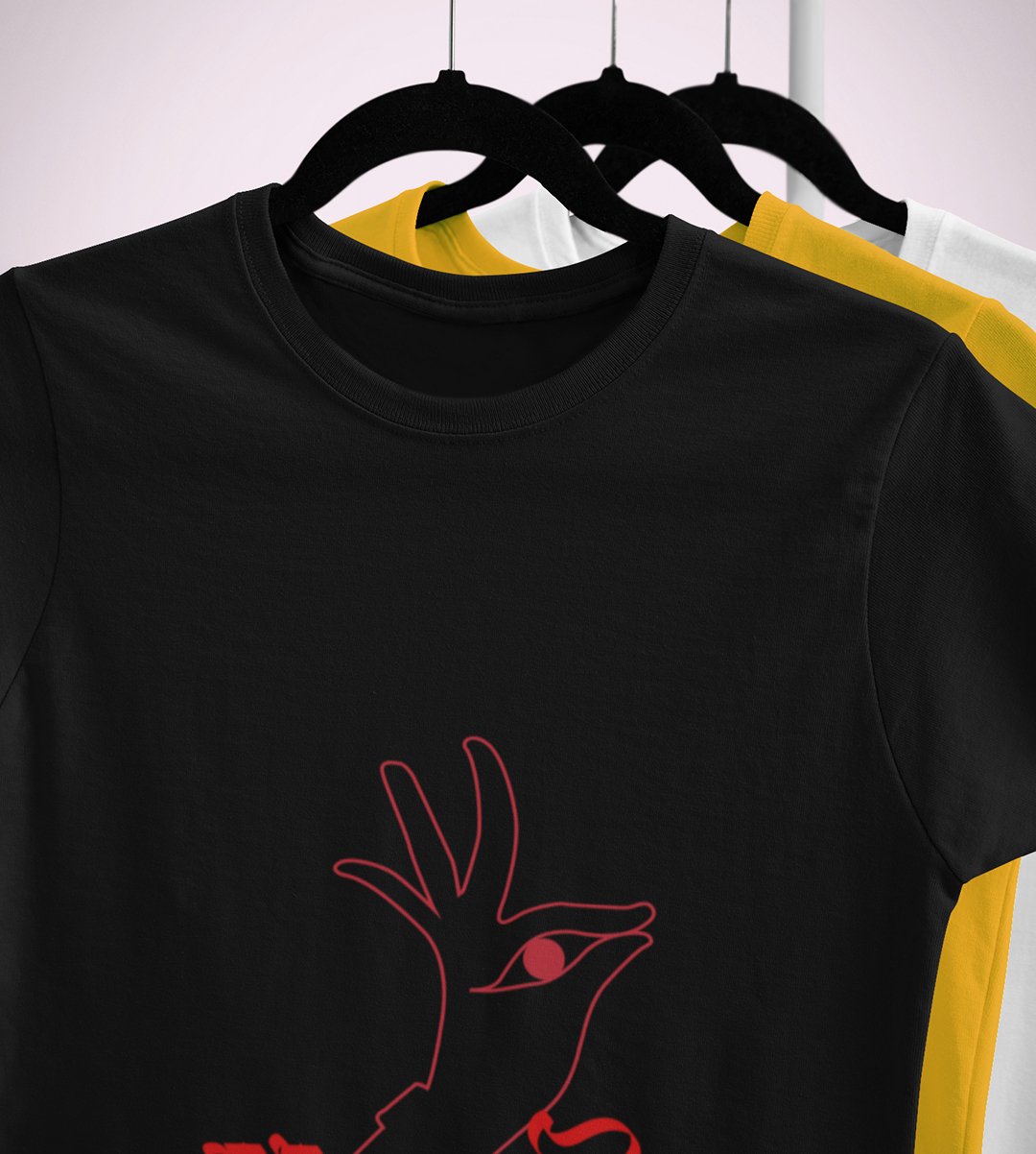 Finger structure printed unisex adults round neck cotton half-sleeve black tshirt specially for Navratri festival/ Durga puja