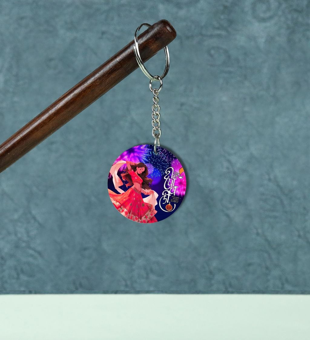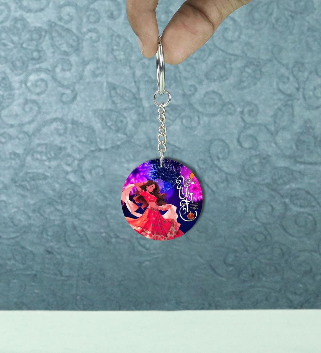 Fireworks in Sky Diwali Printed Round Keychain Pack of 2