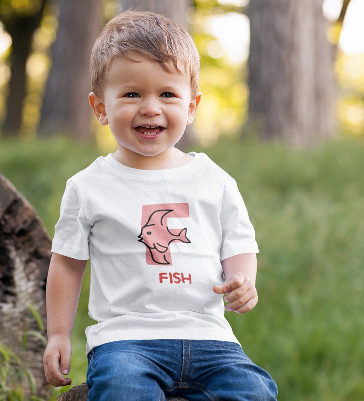 Fishy Fish, Printed Cotton tshirt (white) for Boys