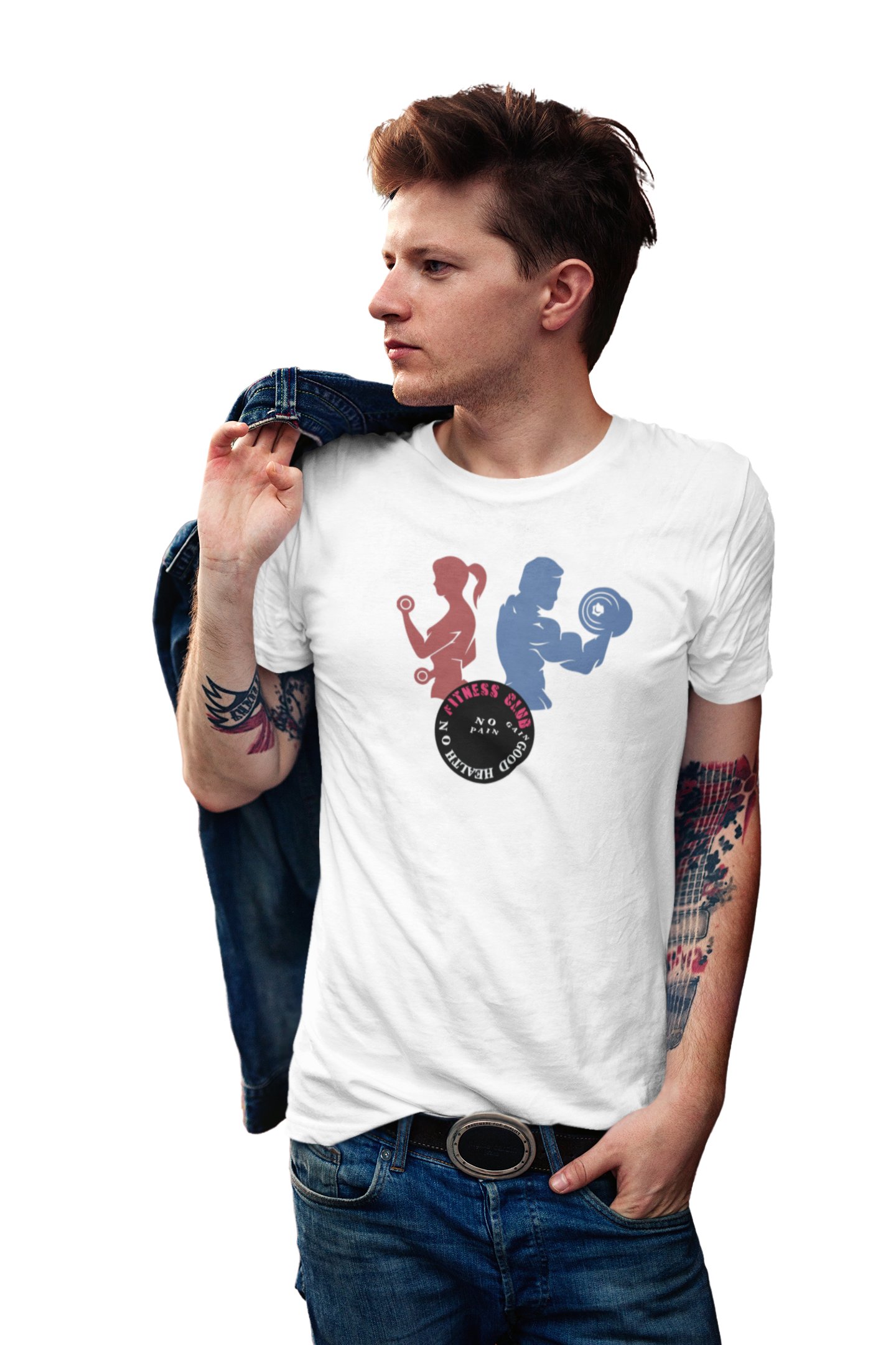 Fitness Club, Good Health On, Round Neck Gym Tshirt (White Tshirt) - Clothes for Gym Lovers - Suitable for Gym Going Person - Foremost Gifting Material for Your Friends and Close Ones