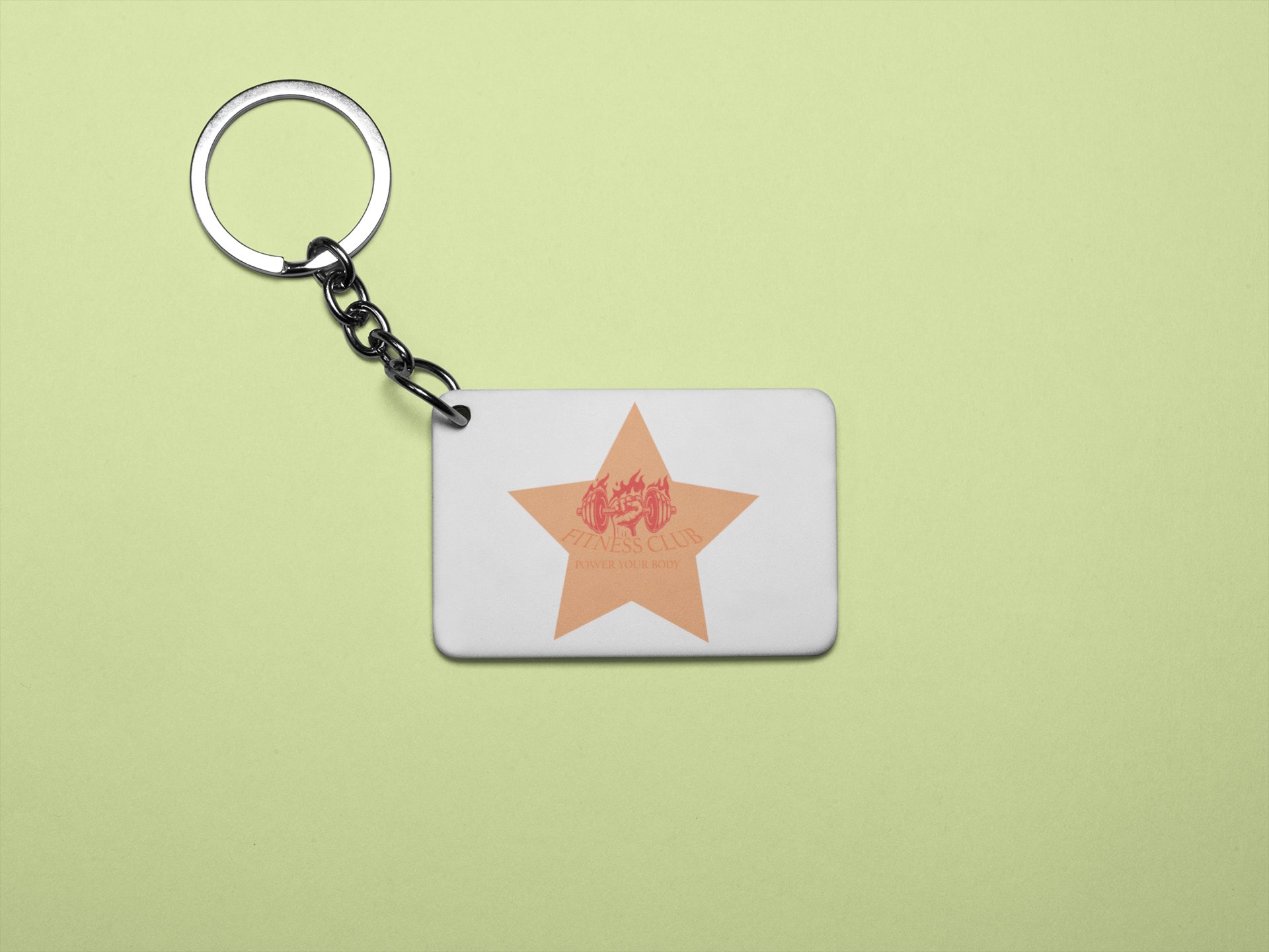 Fitness Club, Power Your Body, (BG Star Orange) - Printed Keychains for gym lovers(Pack of 2)