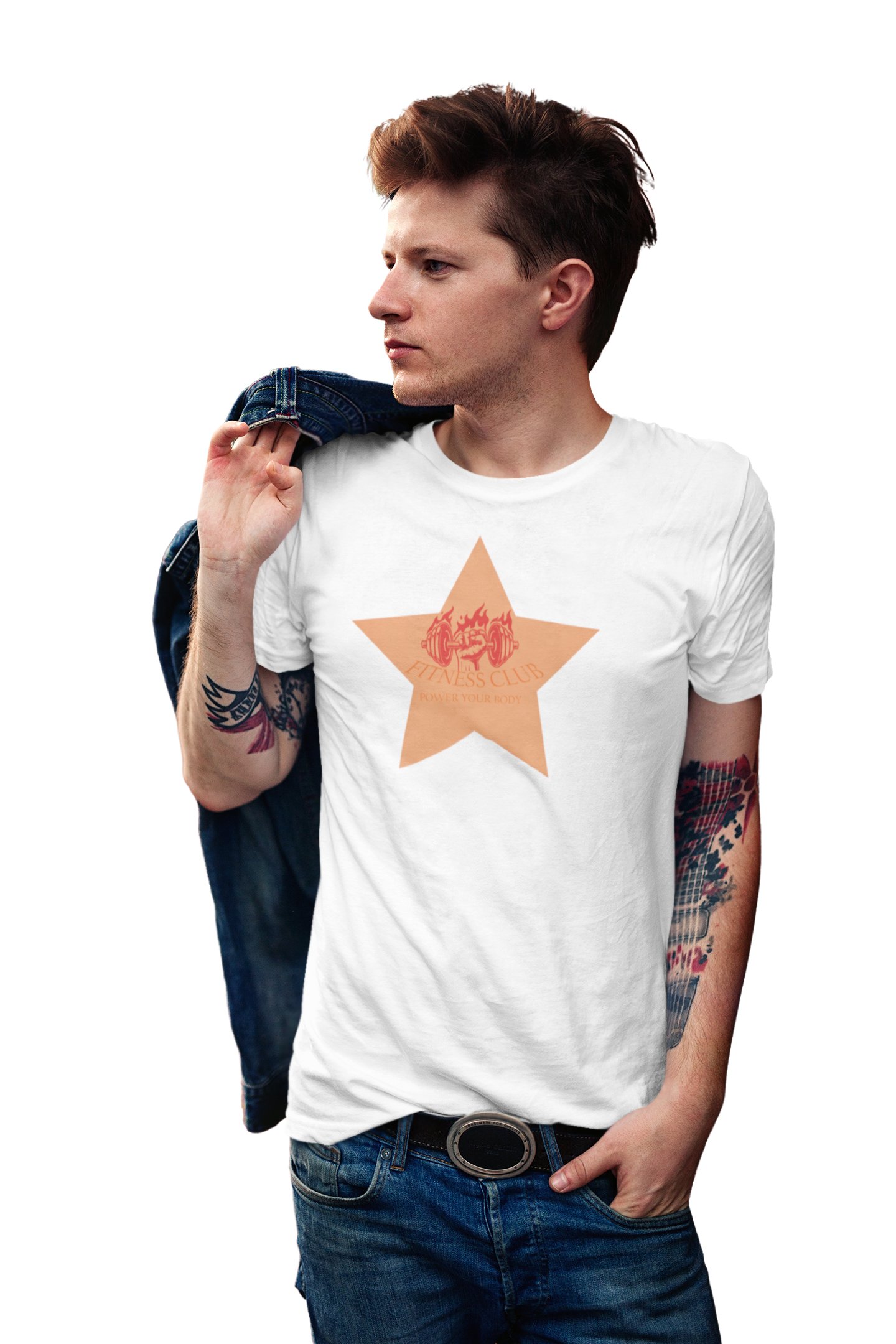Fitness Club, Power Your Body, (BG Star Orange), Round Neck Gym Tshirt (White Tshirt) - Clothes for Gym Lovers - Suitable for Gym Going Person - Foremost Gifting Material for Your Friends and Close Ones