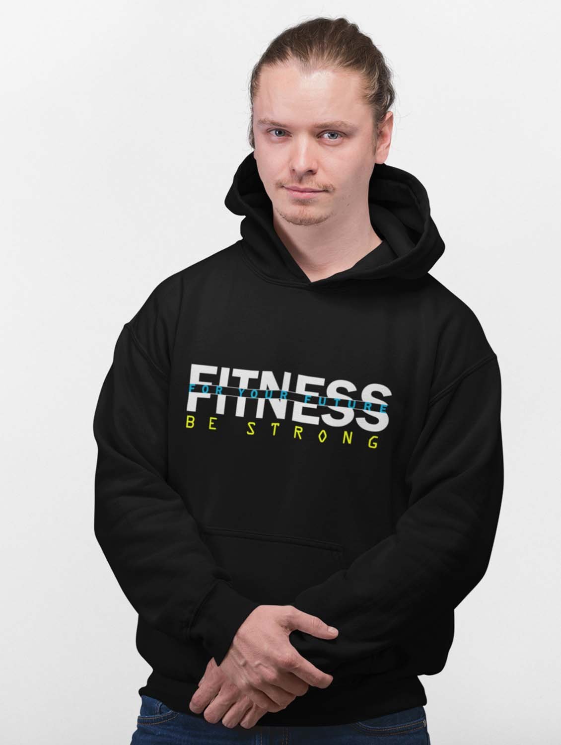 Fitness For Your Future (BG Blue& White) printed artswear black hoodies for winter casual wear specially for Men