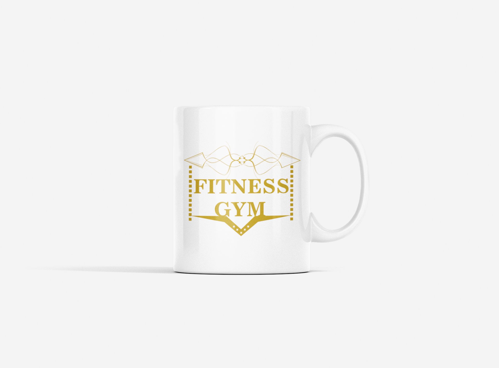 Fitness Gym, (BG Golden) - gym themed printed ceramic white coffee and tea mugs/ cups for gym lovers