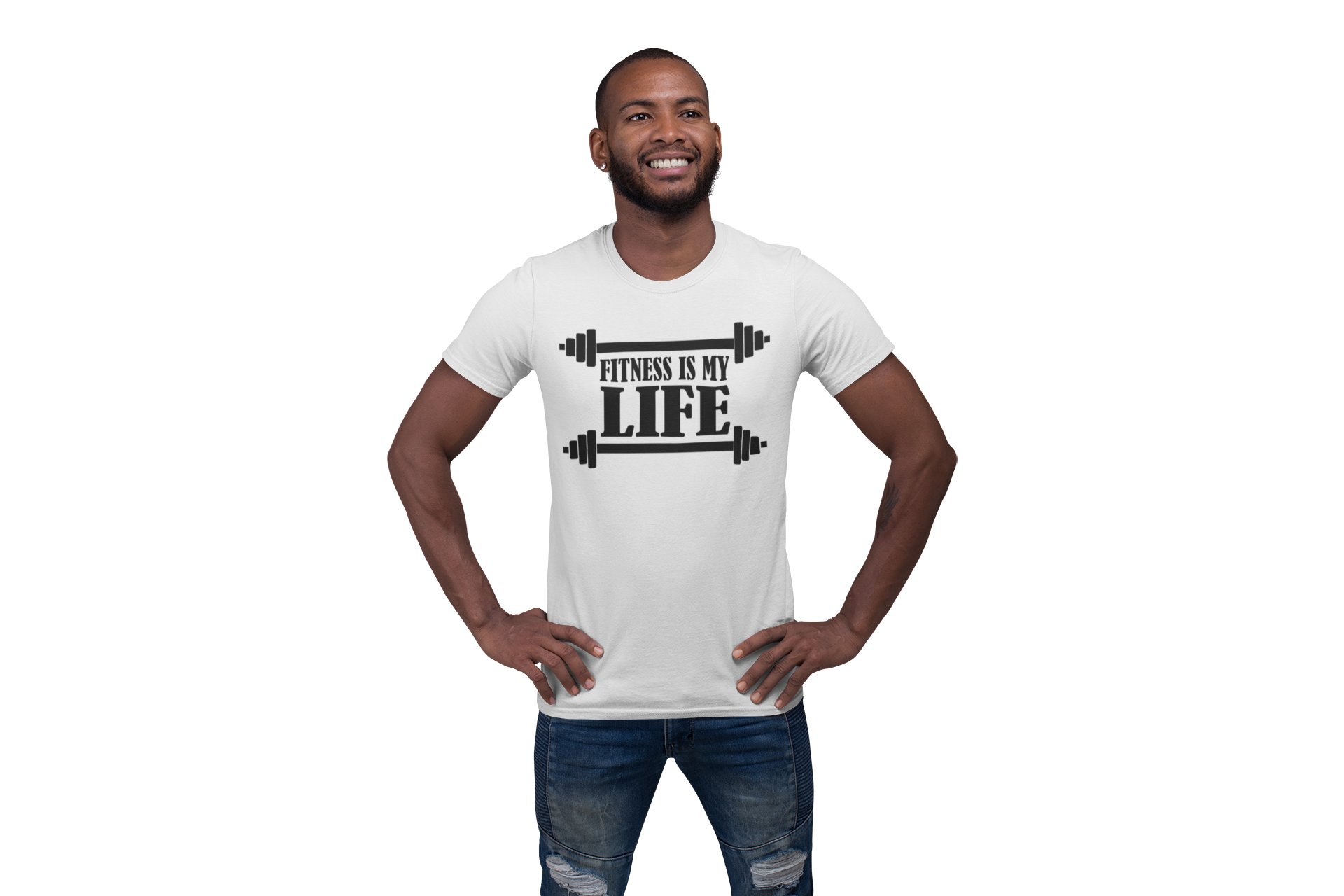 Fitness is My Life (BG Black), Round Neck Gym Tshirt (White Tshirt) - Clothes for Gym Lovers - Suitable for Gym Going Person - Foremost Gifting Material for Your Friends and Close Ones