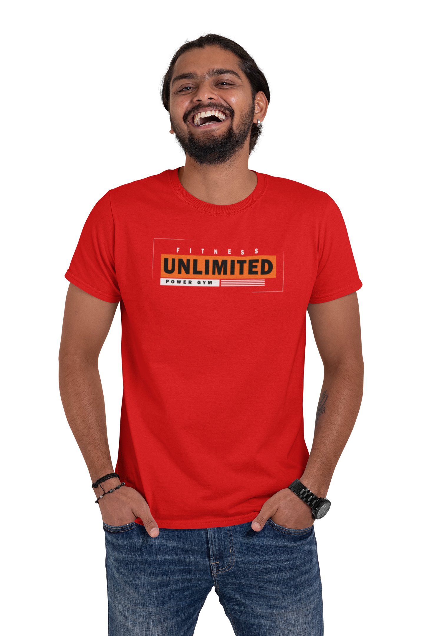 Fitness Unlimited, (BG Orange), Power Gym, 4 Dashes, Round Neck Gym Tshirt (Red Tshirt) - Foremost Gifting Material for Your Friends and Close Ones