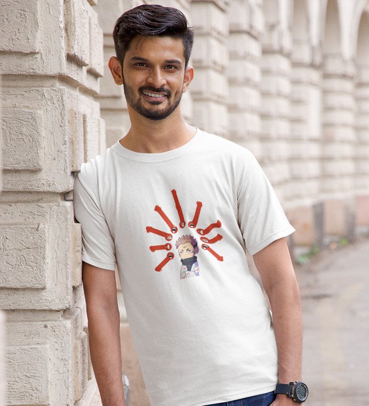 Five Faces Of Itadori Cotton White Printed Tshirt For Mens and Boys
