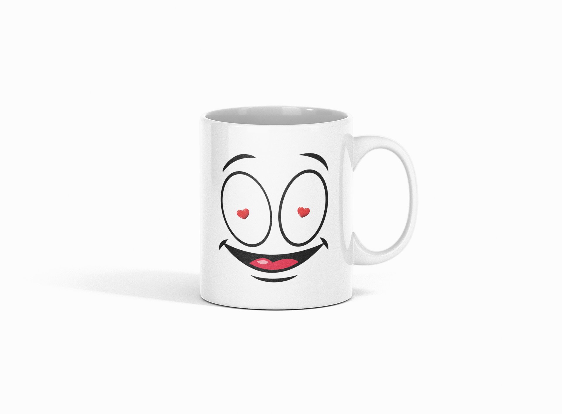 Flashing Heart in Eyes- emoji printed ceramic white coffee and tea mugs/ cups for emoji lover people