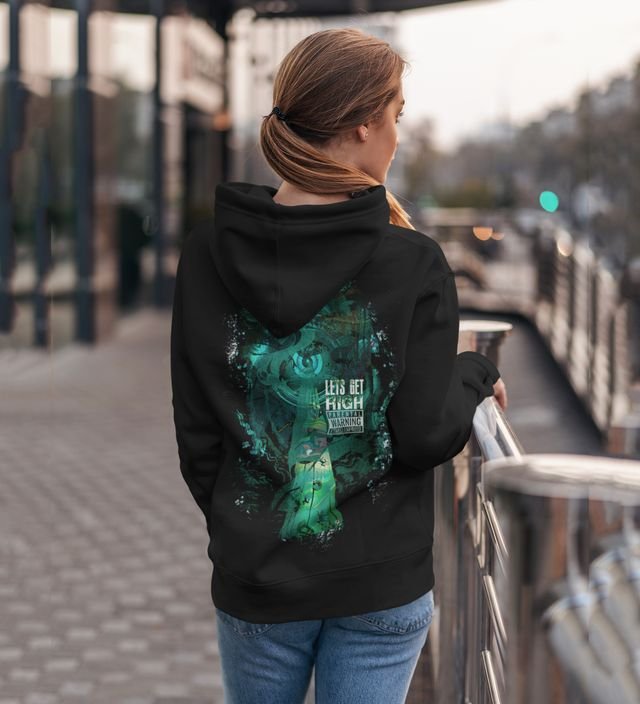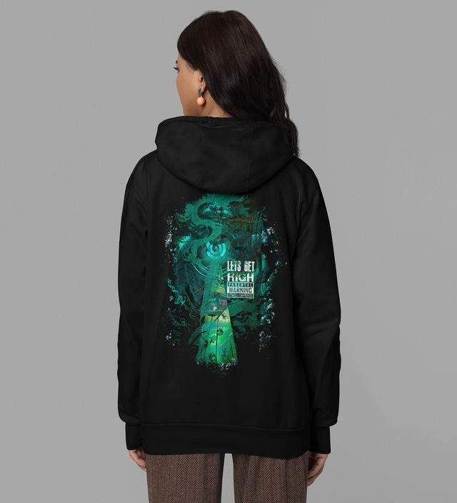 Floating in the Cosmos Let Is Get High Black Cotton Printed Hoodie For Women