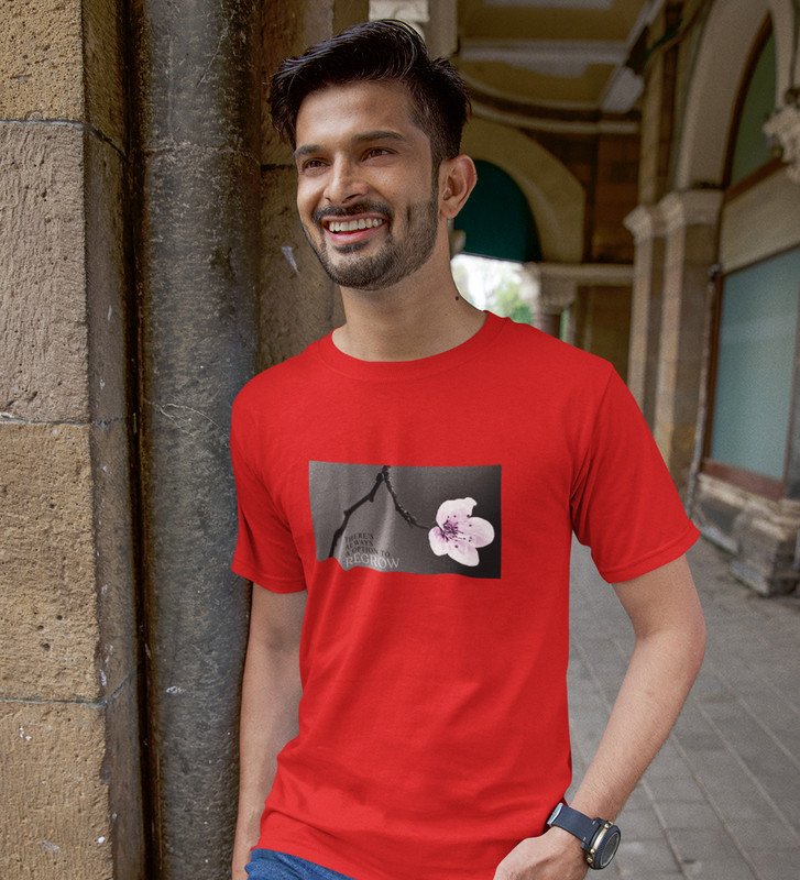 Flourish, Red Urban Legend: Men's Oversized Round Neck T-Shirt with Front Print