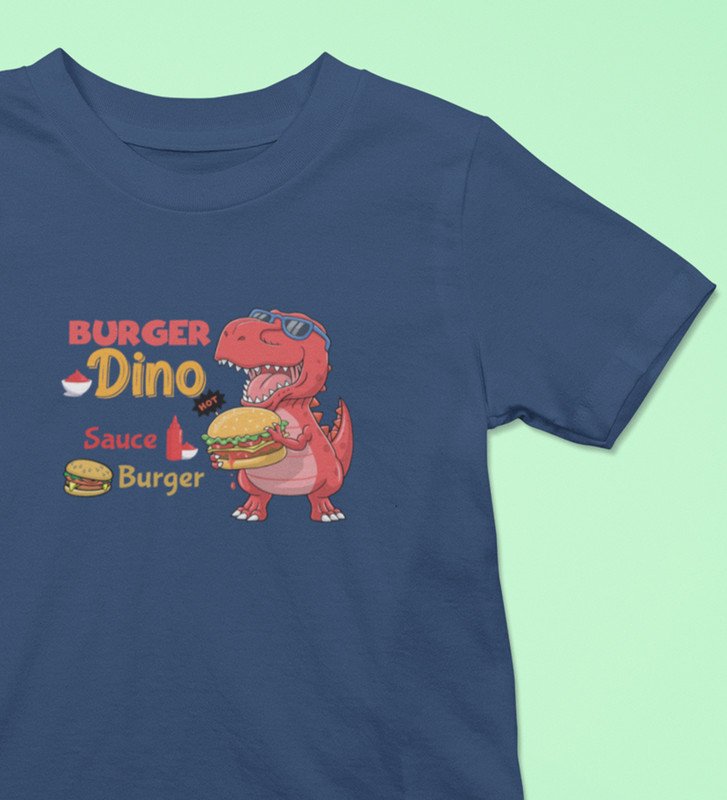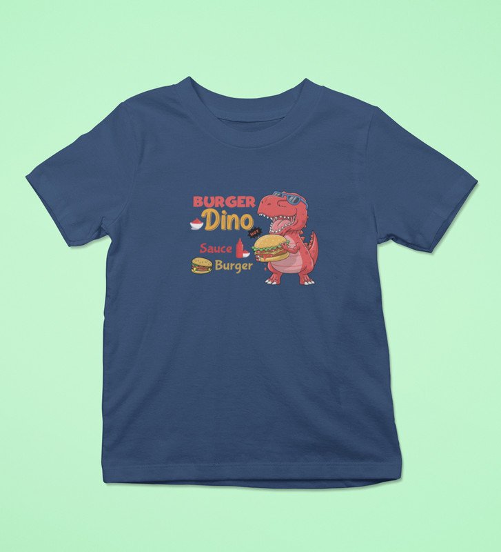 Foodie Dino, Boys Cotton Text Print T-shirt (Navy Blue)