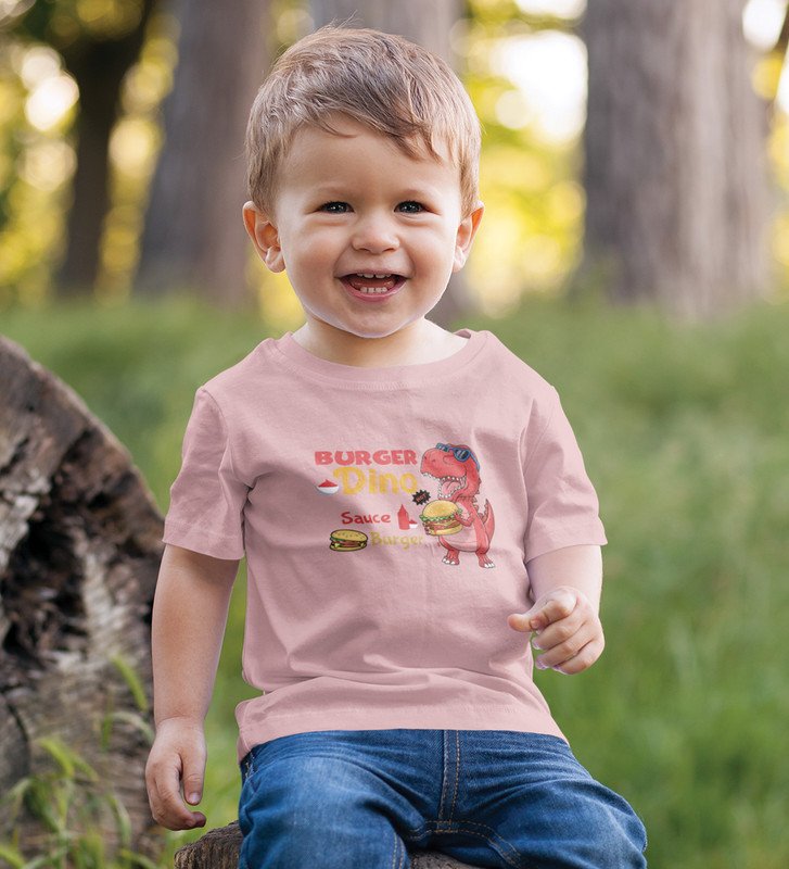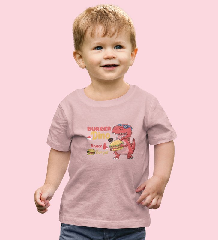Foodie Dino, Boys Cotton Text Print Tshirt (baby pink)