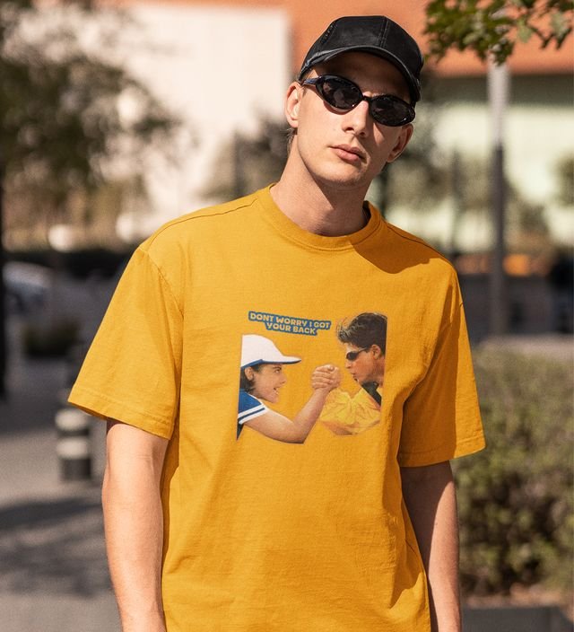 Friends Always Got Your Yellow Round Neck Cotton Half Sleeved Men T Shirt with Printed Graphics
