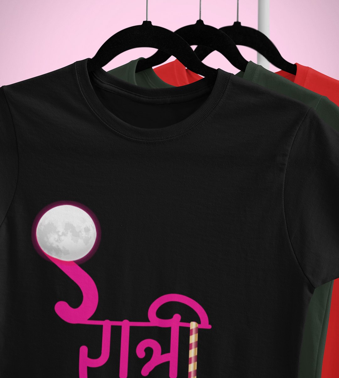 Navratri is a very auspicious festival for hindus. It takes place at the beginning of October and sometimes September. Enjoy the 9 days of festivities with full zeal and make yourself submerged in the love of Maa Durga. Navratri is also known as Durga Puja. And with this Tees, you can shine like a star during this festive season with our navratri themed cotton half sleeved Tshirts. You can pair our t-shirts with trousers and denim of your choice and make it a weekday smart casual or weekend wear. This is durable. This tshirt is smooth and soft which makes you comfortable to wear during all seasons. The printing in it is durable and odourless. It has five sizes, S,M,L,XL,XXL. The Tshirt colour is intact even after repeated washes. It can be kept in your wardrobe and hangers. Please avoid washing mashine to clean this Tee, it may affect the print. Hand wash only. We have brought you many navratri related designs printed on our different colour Tshirts to choose from. Grab it now.