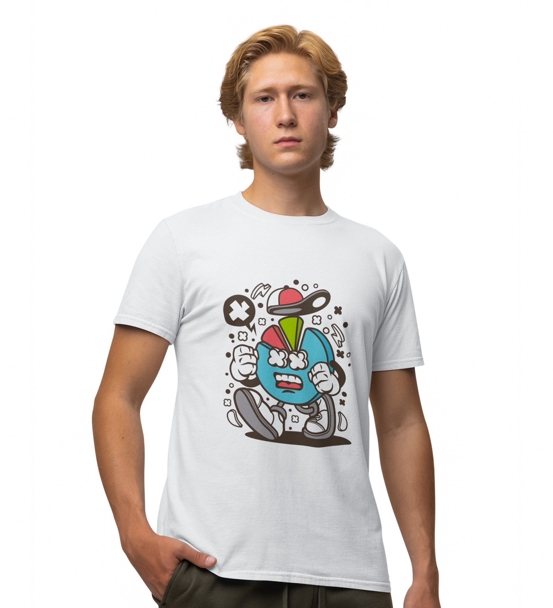 Pie In Hurry White Round Neck Cotton Half Sleeved Men's T-Shirt with Printed Graphics