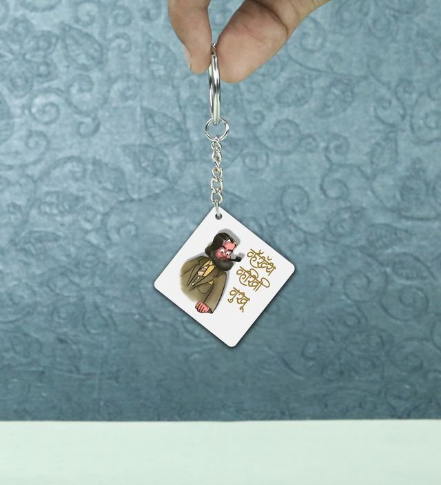 Funny Marathi Text and Character Design Printed Keychain Pack of 2