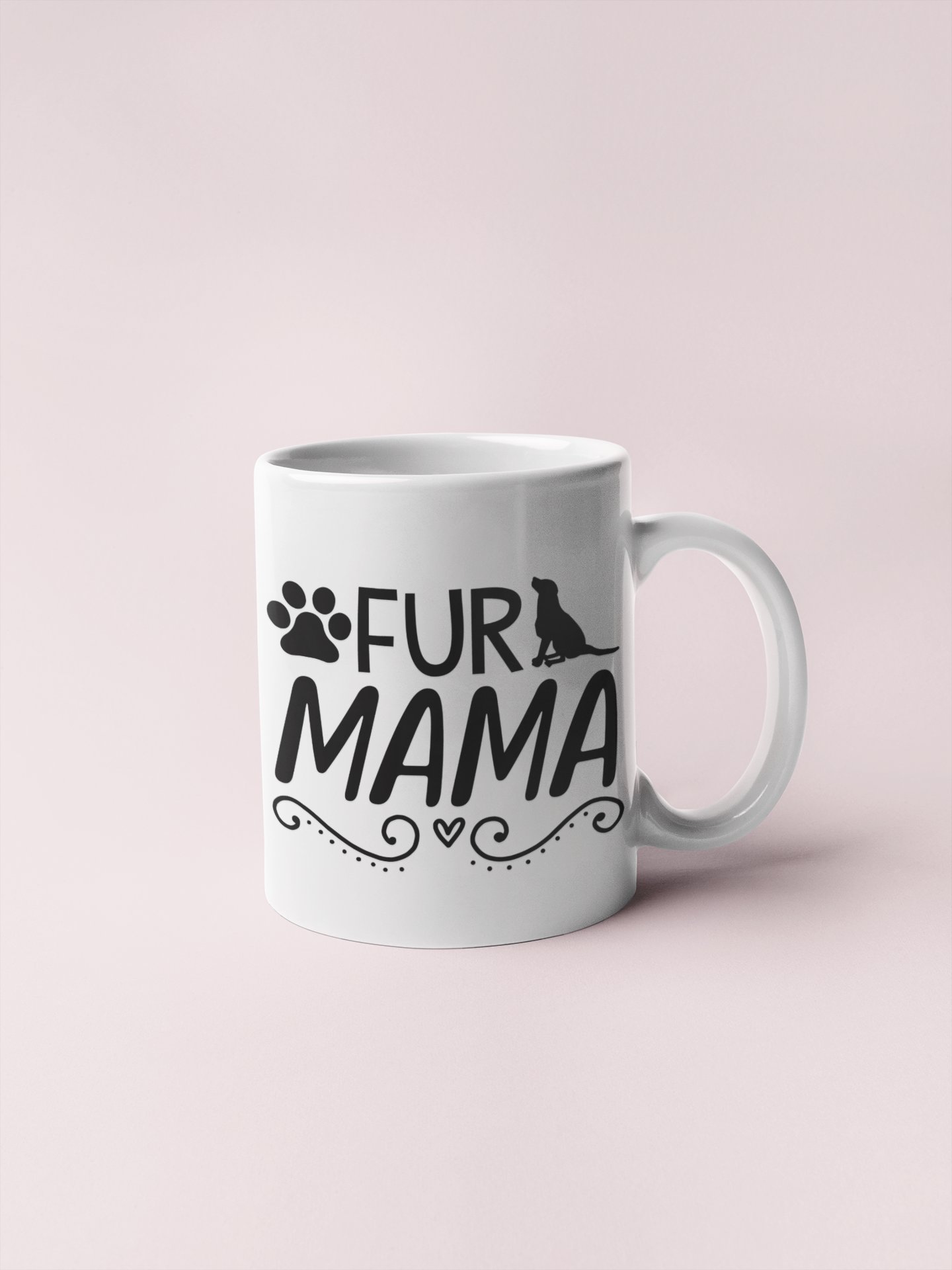 Fur Mama text in black - pets themed printed ceramic white coffee and tea mugs/ cups for pets lover people
