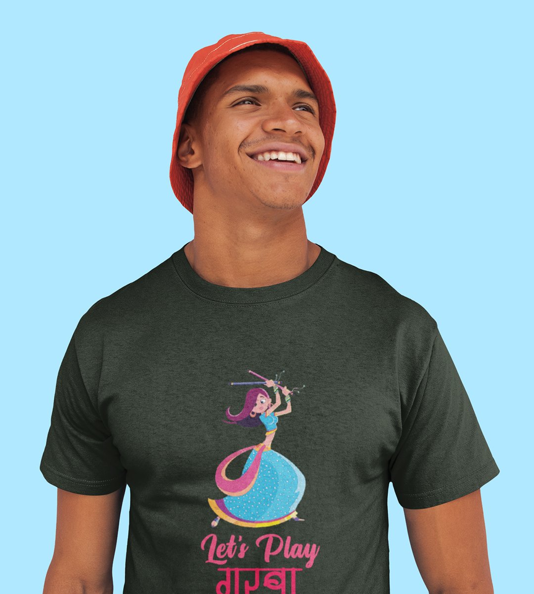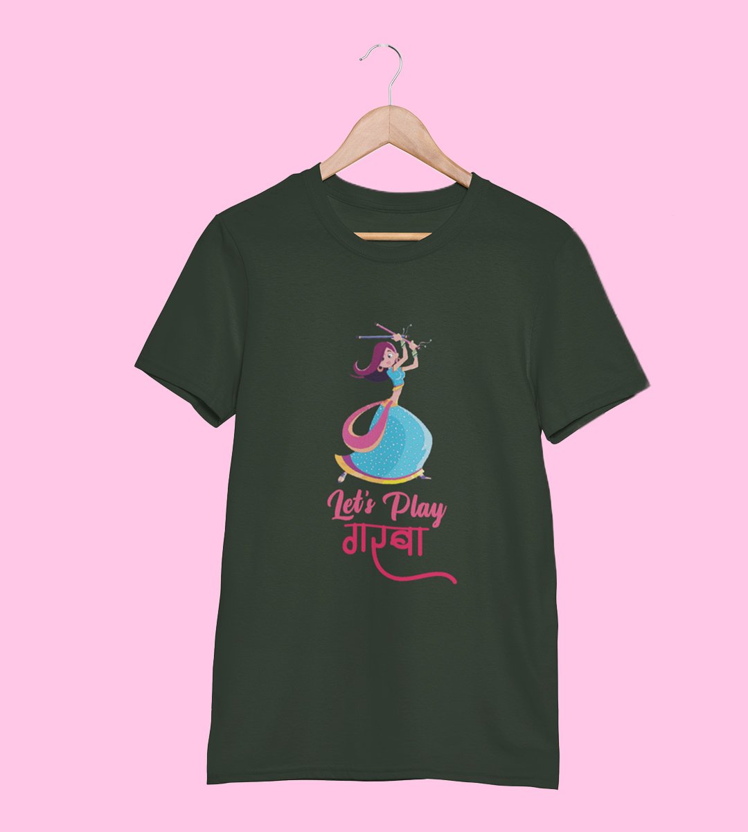 Garba girl printed unisex adults round neck cotton half-sleeve green tshirt specially for Navratri festival/ Durga puja