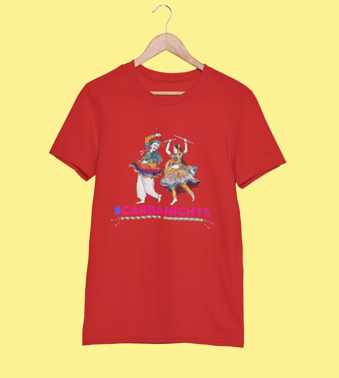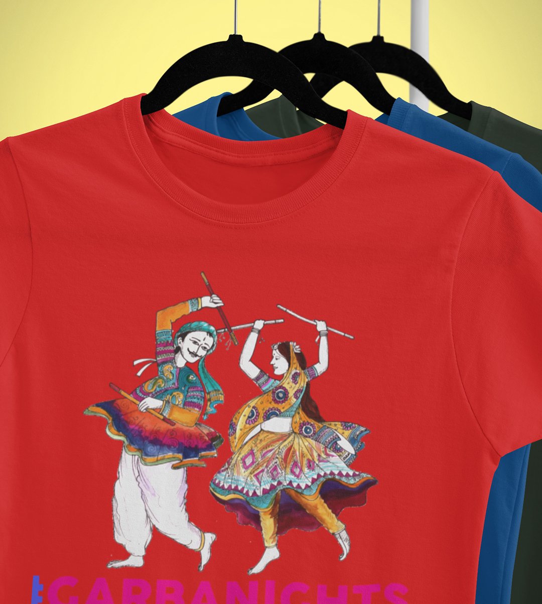 Garba Nights printed unisex adults round neck cotton half-sleeve red tshirt specially for Navratri festival/ Durga puja