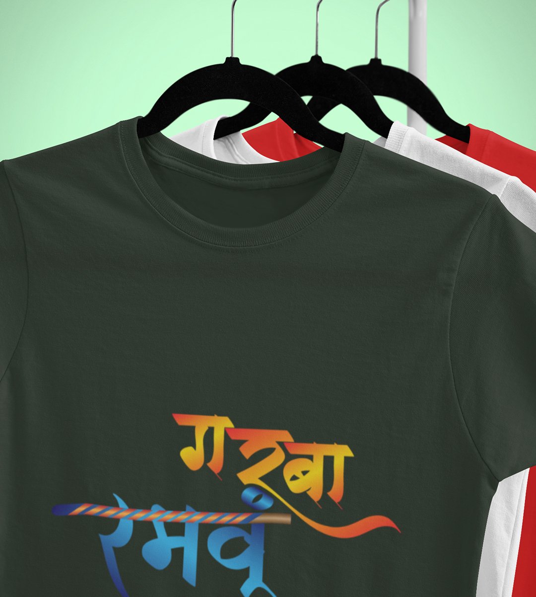 Garba Rambu printed unisex adults round neck cotton half-sleeve green tshirt specially for Navratri festival/ Durga puja