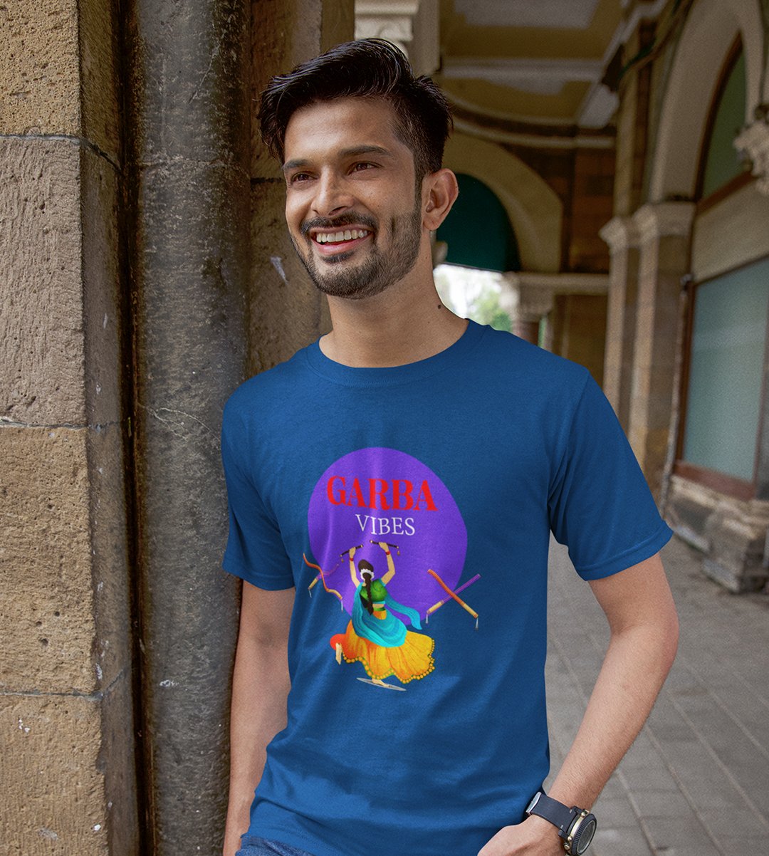 Garba vibes printed unisex adults round neck cotton half-sleeve blue tshirt specially for Navratri festival/ Durga puja