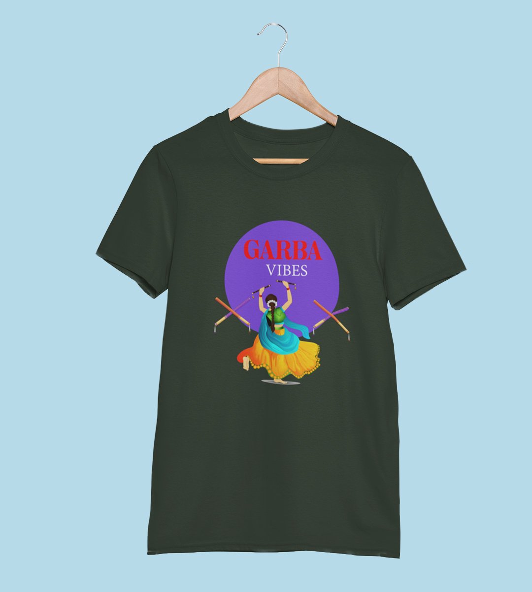 Garba vibes printed unisex adults round neck cotton half-sleeve green tshirt specially for Navratri festival/ Durga puja