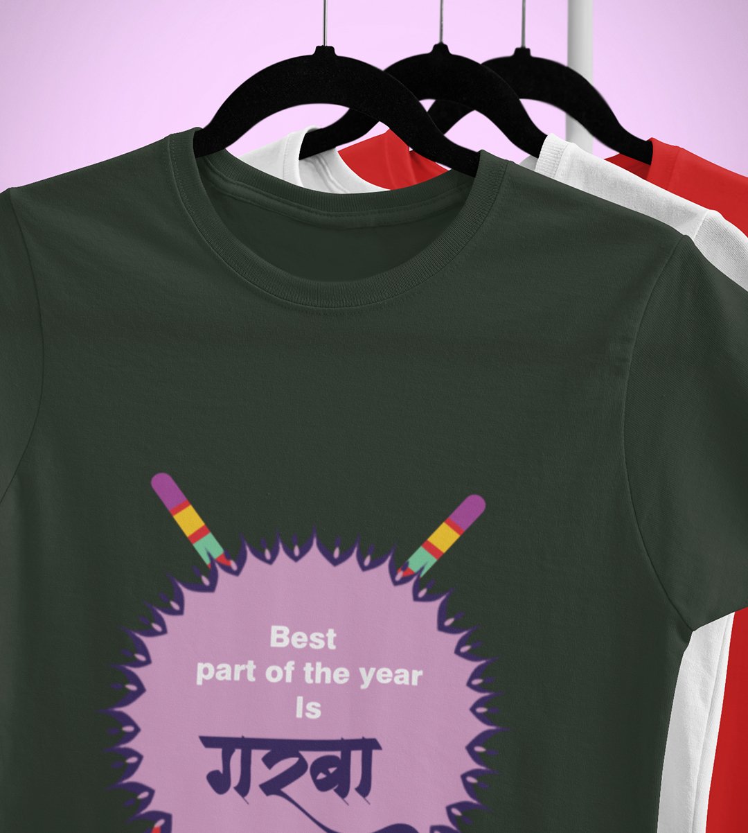 Garba (Violet blast) printed unisex adults round neck cotton half-sleeve green tshirt specially for Navratri festival/ Durga puja