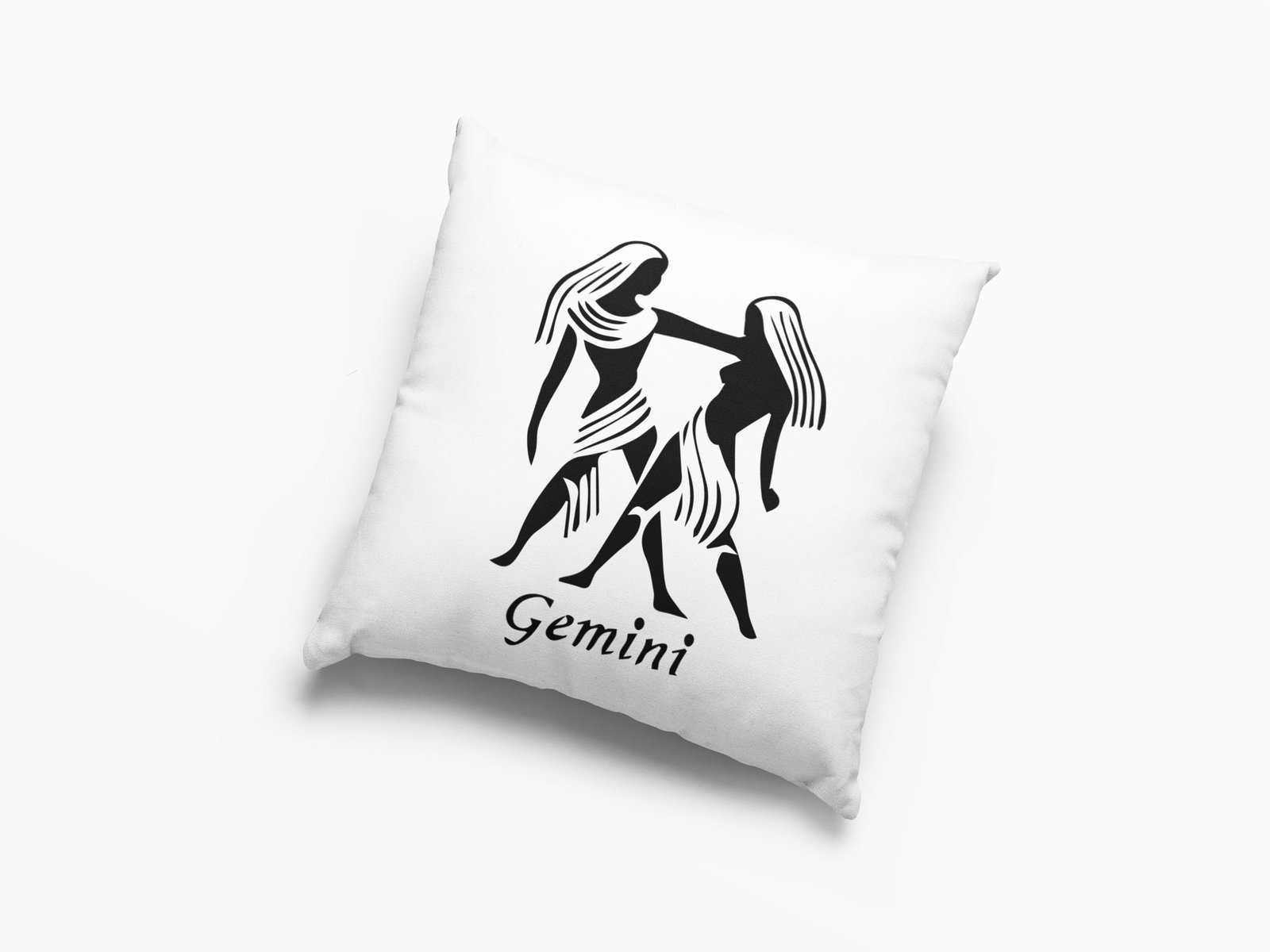 Gemini Black Text With Symbol - Printed Pillow Covers(Pack Of 2)