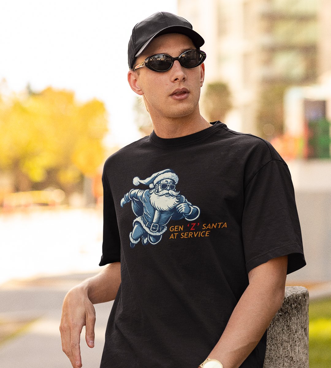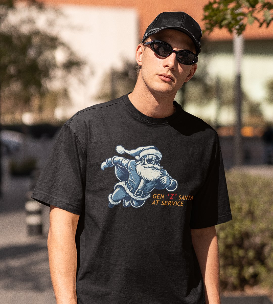 Gen-z Santa At Service : Printed T-shirt (Black) Best Gift For Boys Girls