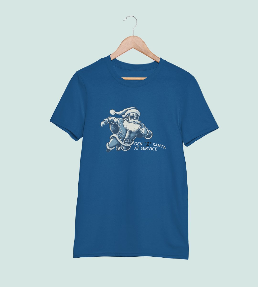 Gen-z Santa At Service : Printed T-shirt (Blue) Best Gift For Boys Girls