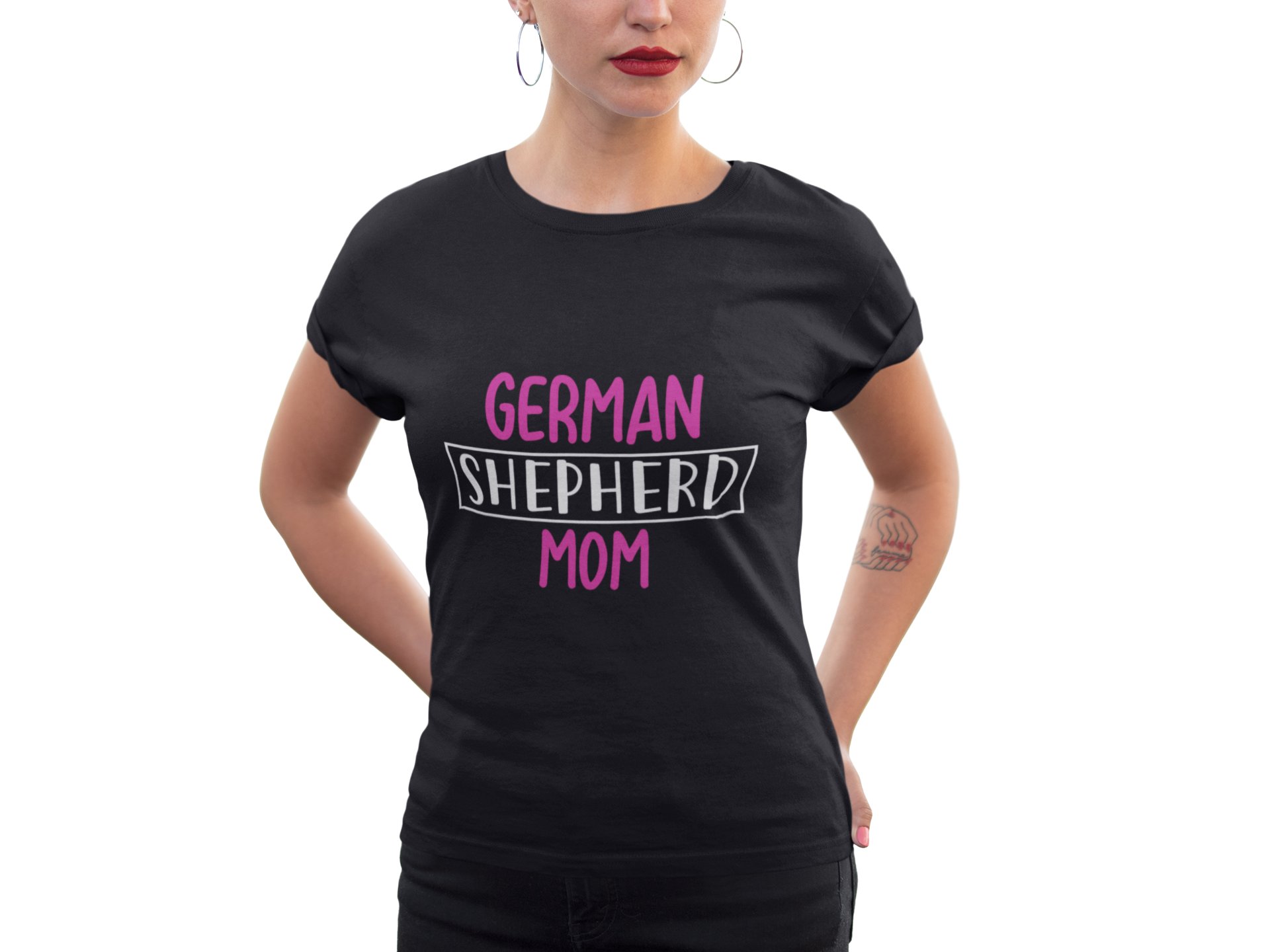 German shepherd Mom-printed family themed cotton blended half-sleeve t-shirts made for women (black)