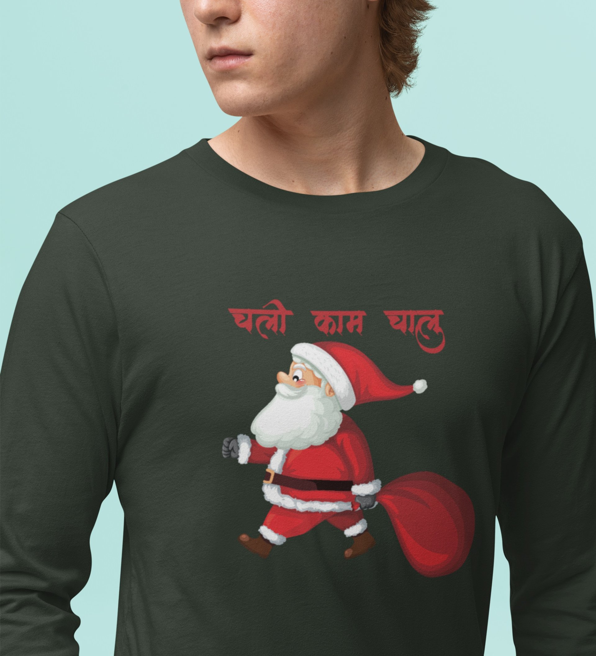 Get Back To Work Santa : Hydrate Festively withGreenFull Sleeve T-shirt - Leak-Proof, Marathi Printed Design