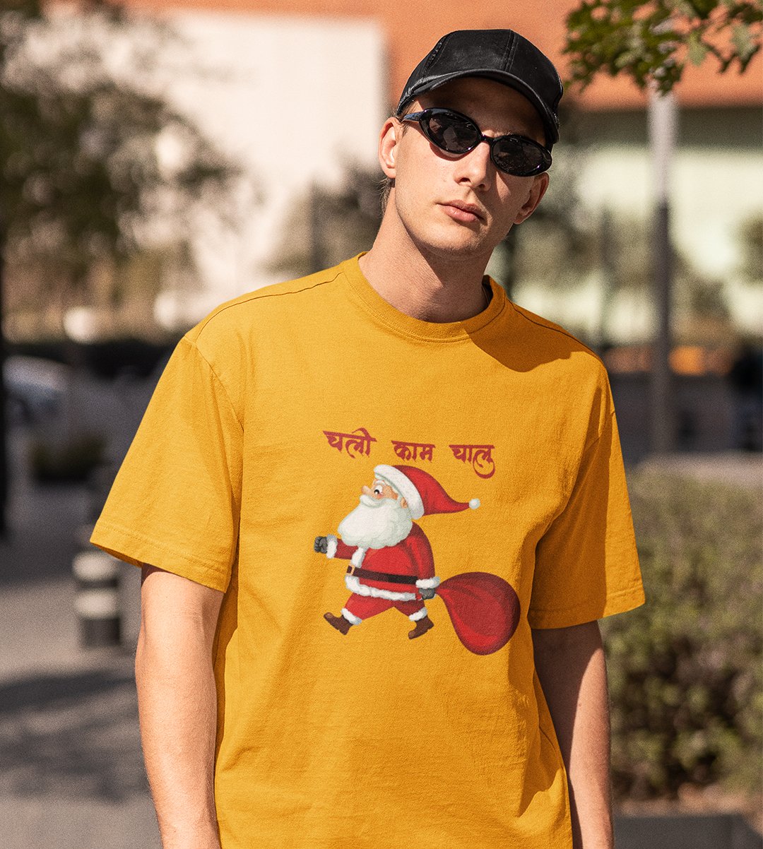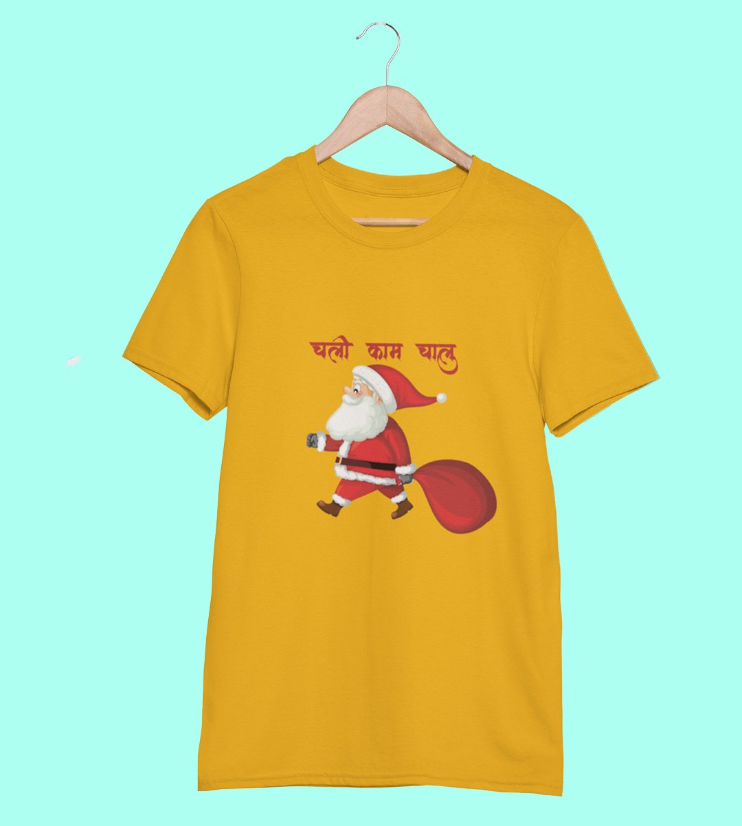 Get Back To Work Santa : Hydrate Festively with(Yellow) T-shirt - Leak-Proof, Marathi Printed Printed