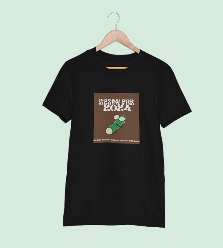 Get Ready For 2024 Black Printed T-shirt For Mens On New Year Theme Best Gift For New Year